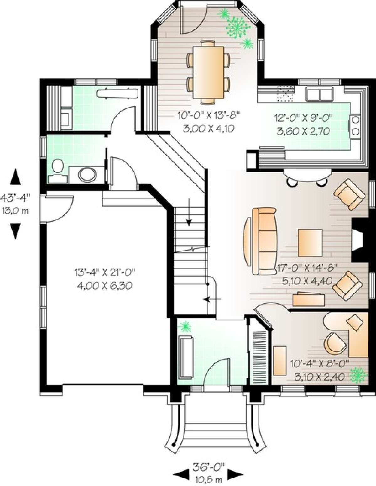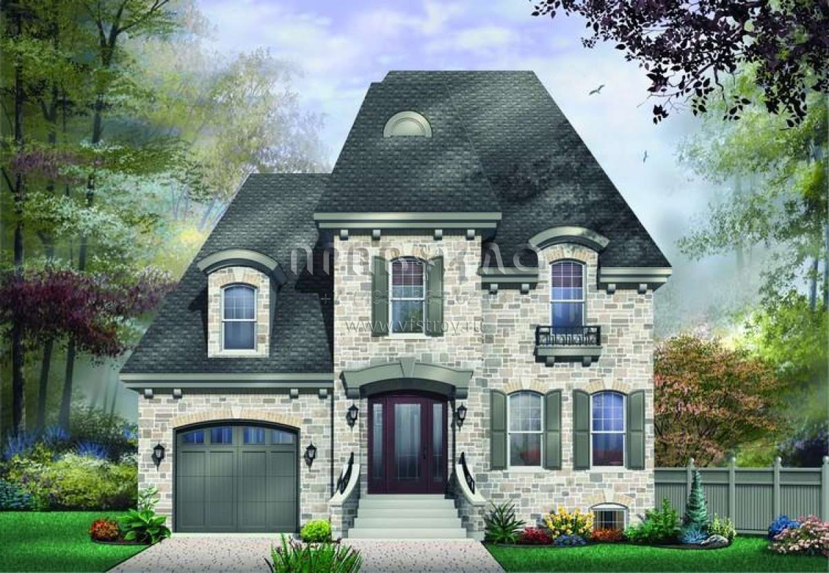 Проект двухэтажного дома с гаражом на одну машину в английском стиле S5-212 (034-00727)