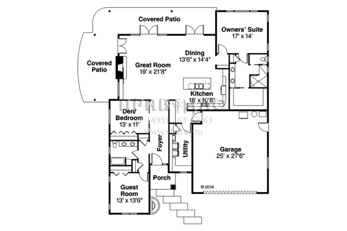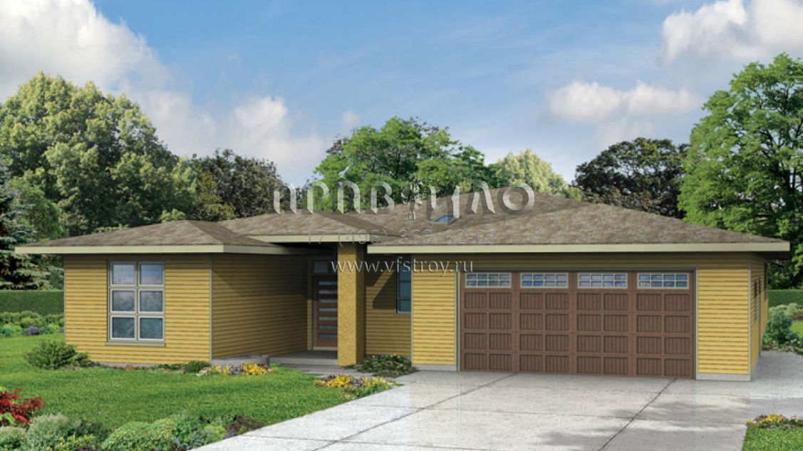 Проект одноэтажного дома с гаражом на две машины в стиле Ранчо S5-212 (035-00658)