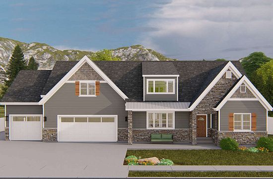 Проект двухэтажного дома с гаражом на две машины в стиле Ранчо S5-212 (035-00715)
