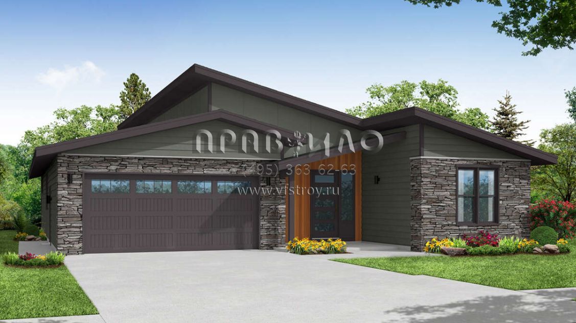 Проект одноэтажного дома с гаражом на две машины в современном стиле S5-212 (035-00962)
