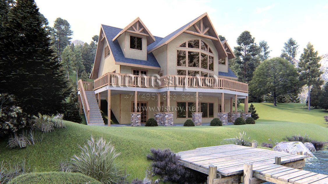Проект двухэтажного дома без гаража в стиле Шале S5-212 (039-00352)