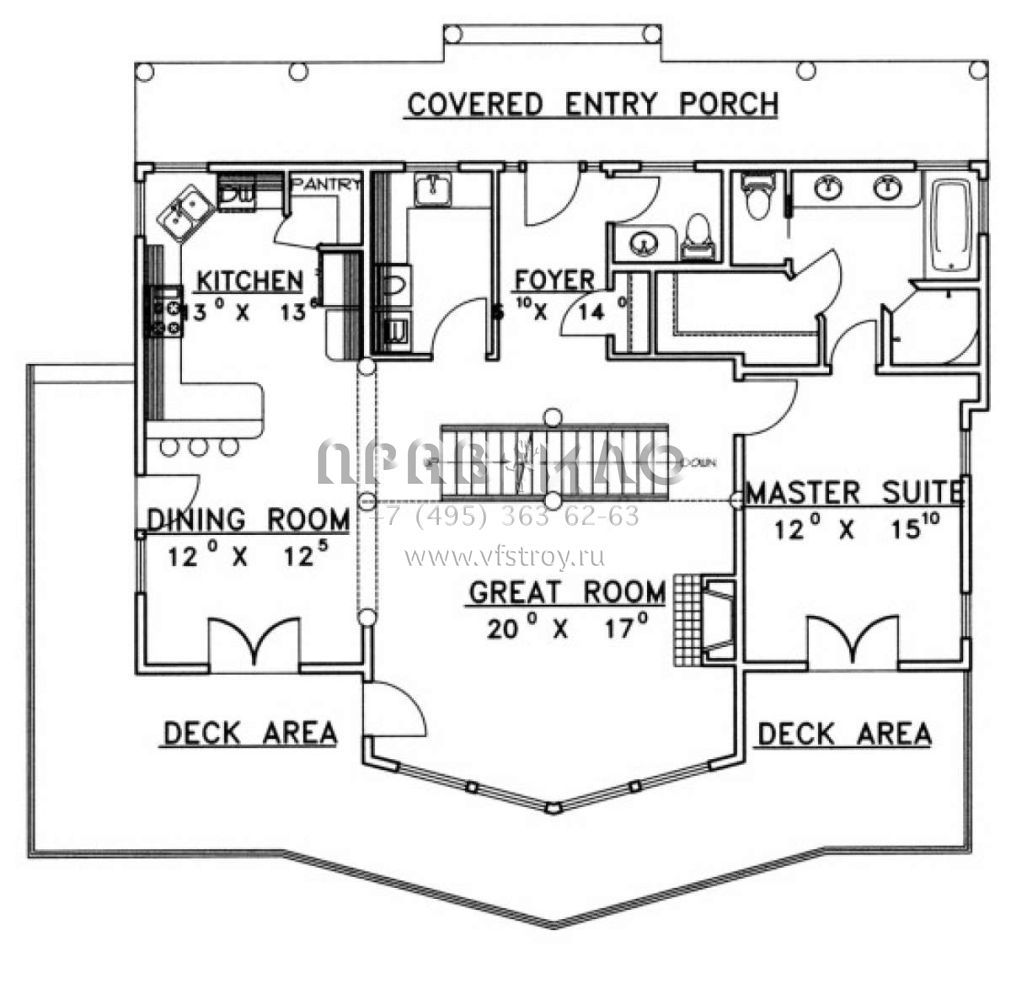 S5-212 (039-00448) Это иностранный проект, для которого требуется адаптация под нормы, действующие в Российской Федерации. Вы видите проект дома в стиле Шале. В этом доме сочетаются черты сельской постройки и аскетичность лофта. Внутри жильцы смогут проводить время с максимальным комфортом. Обратим внимание, что сейчас на планировках все размеры представлены в футах. Для перевода в метры вам необходимо значение в футах умножить на 0,3048.