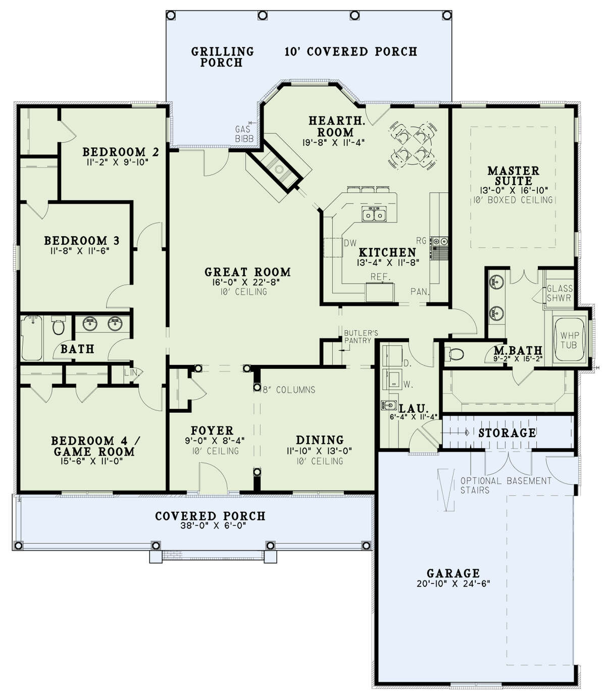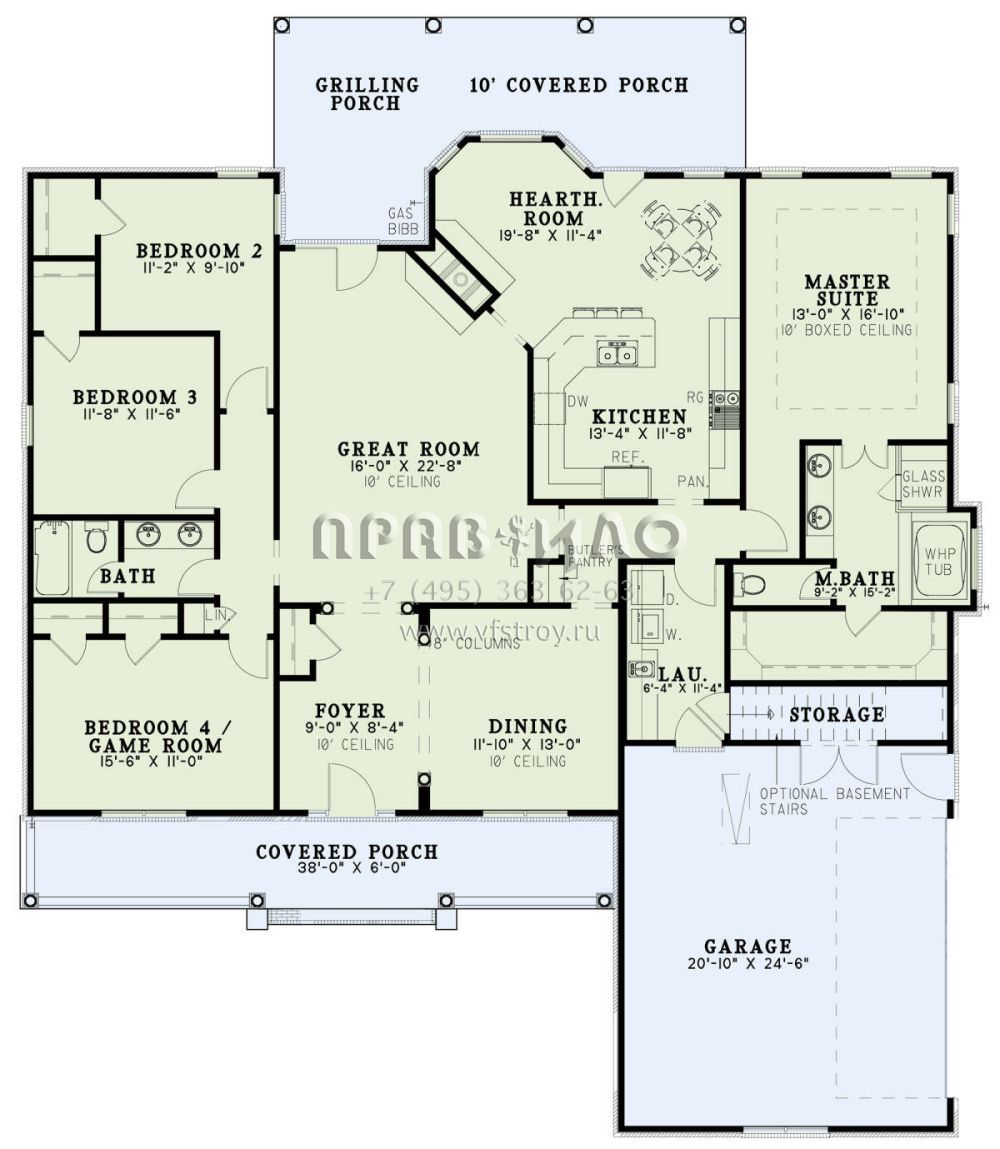 Проект одноэтажного дома с гаражом на две машины в стиле Ранчо S5-212 (110-00323)