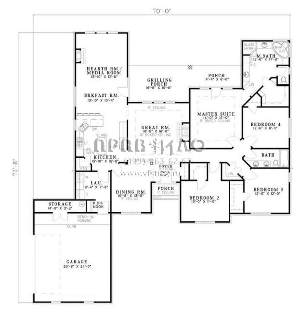 S5-212 (110-00587) Это иностранный проект, для которого требуется адаптация под нормы, действующие в Российской Федерации. Вы видите проект дома в стиле Ранчо. В этом доме сочетаются черты сельской постройки и аскетичность лофта. Внутри жильцы смогут проводить время с максимальным комфортом. Обратим внимание, что сейчас на планировках все размеры представлены в футах. Для перевода в метры вам необходимо значение в футах умножить на 0,3048.