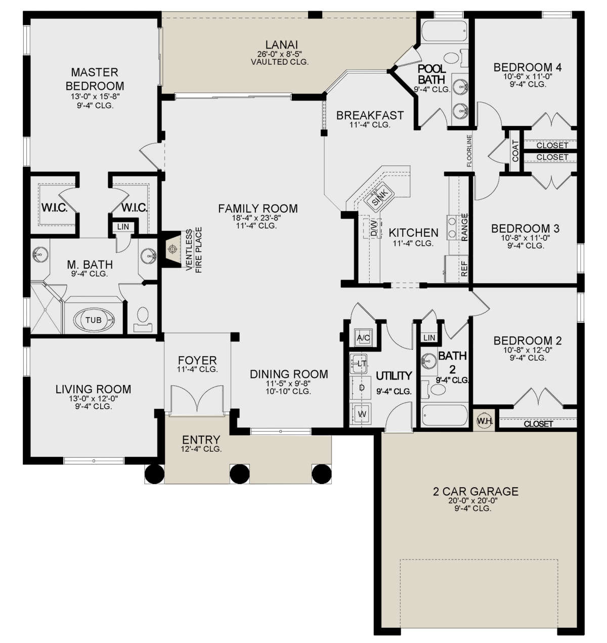 Проект одноэтажного дома с гаражом на две машины в стиле Ранчо S5-212 (3978-00239)