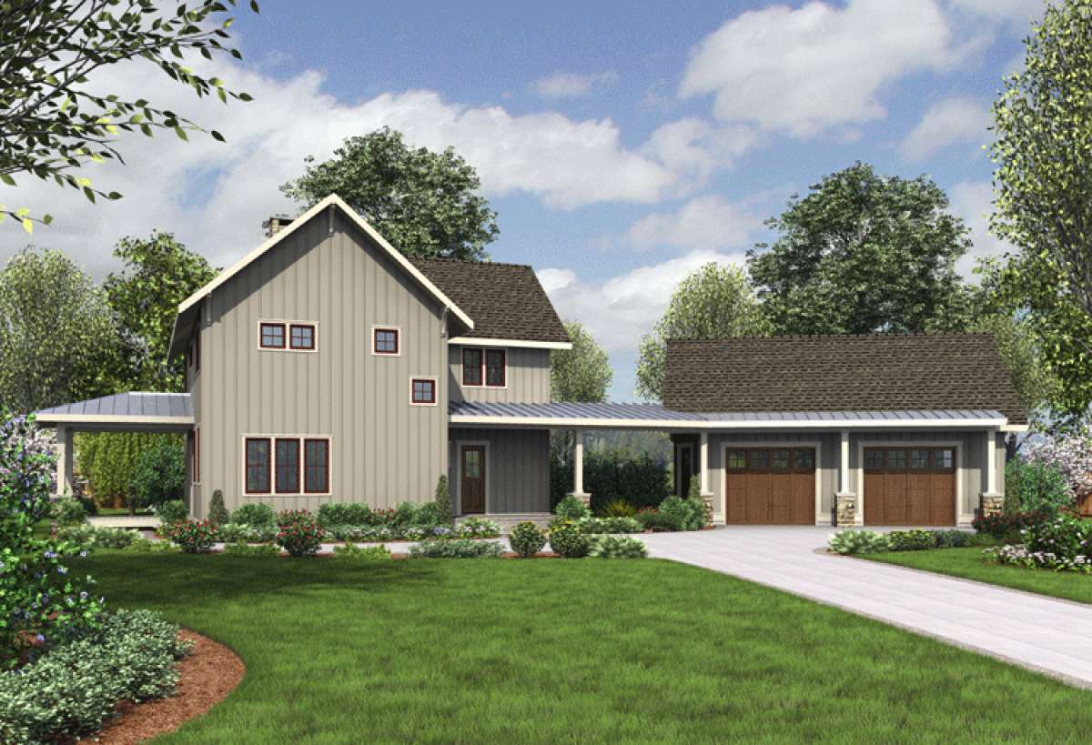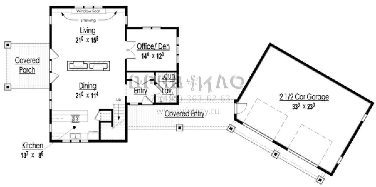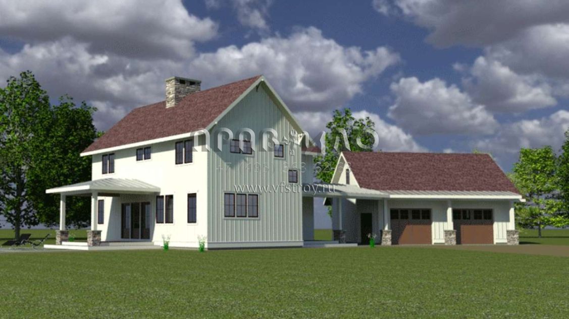 Проект двухэтажного дома с гаражом на две машины в стиле Ранчо S5-212 (7806-00016)