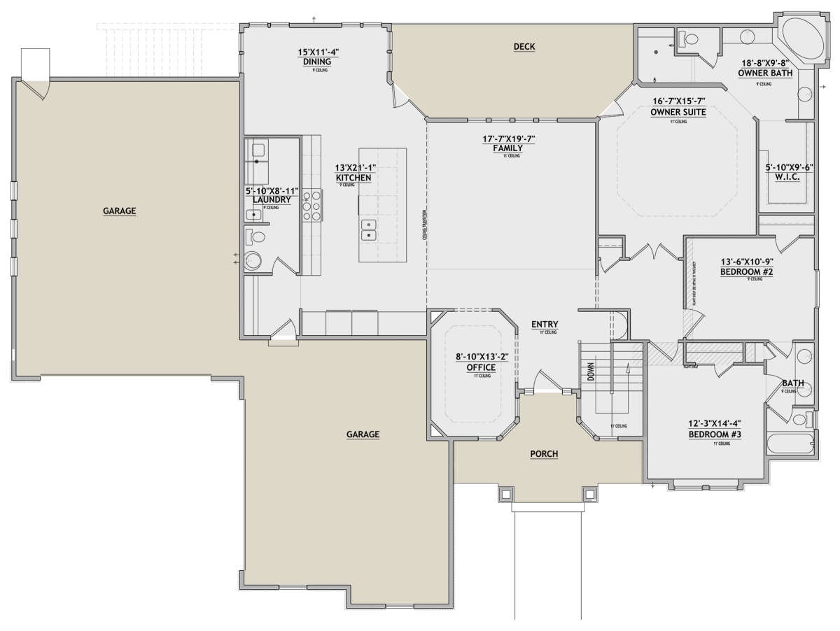 Проект одноэтажного дома с гаражом на три и более машин в американском стиле S5-212 (8768-00066)