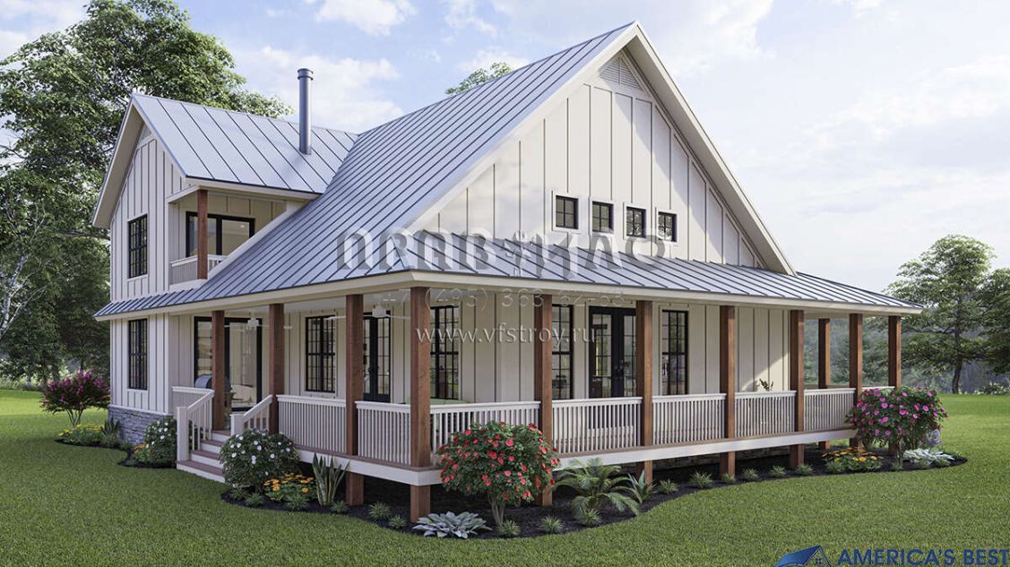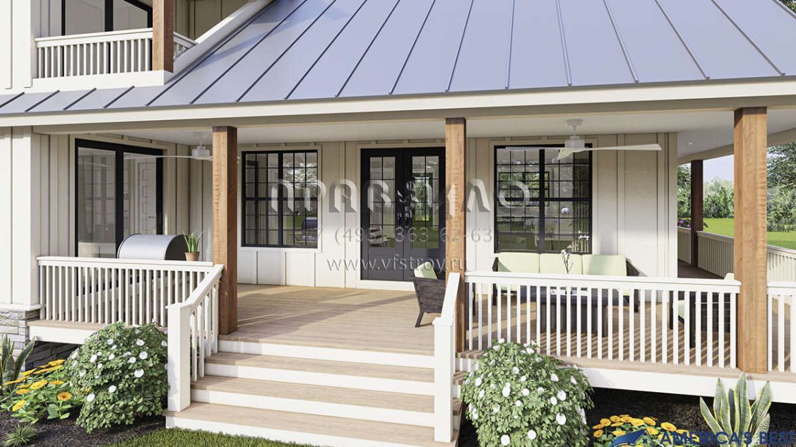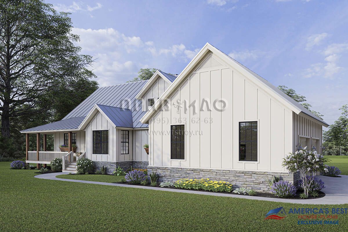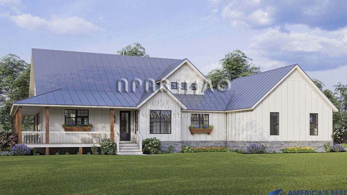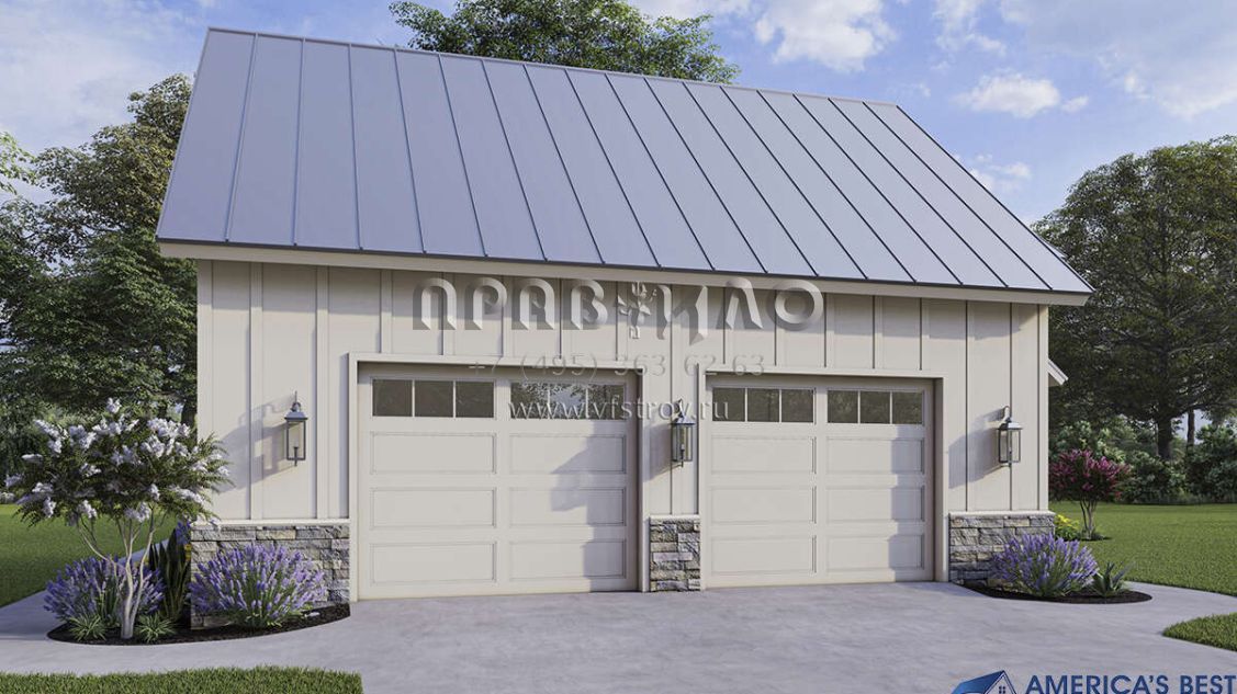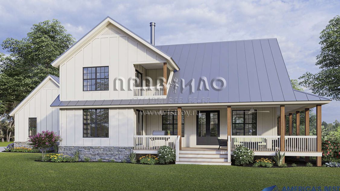 Проект двухэтажного дома с гаражом на две машины в стиле Ранчо S5-212 (940-00314)