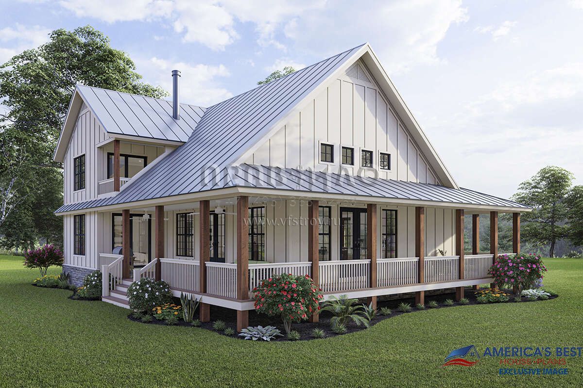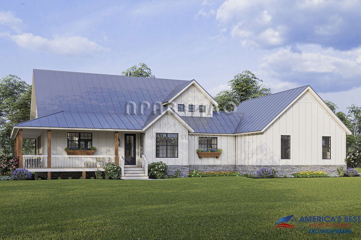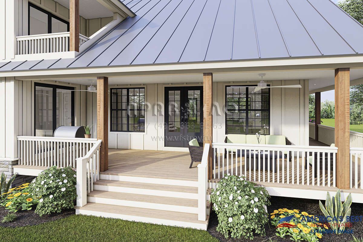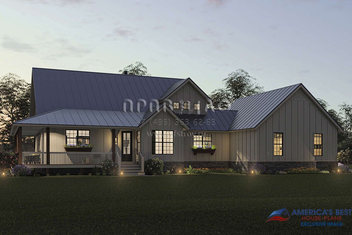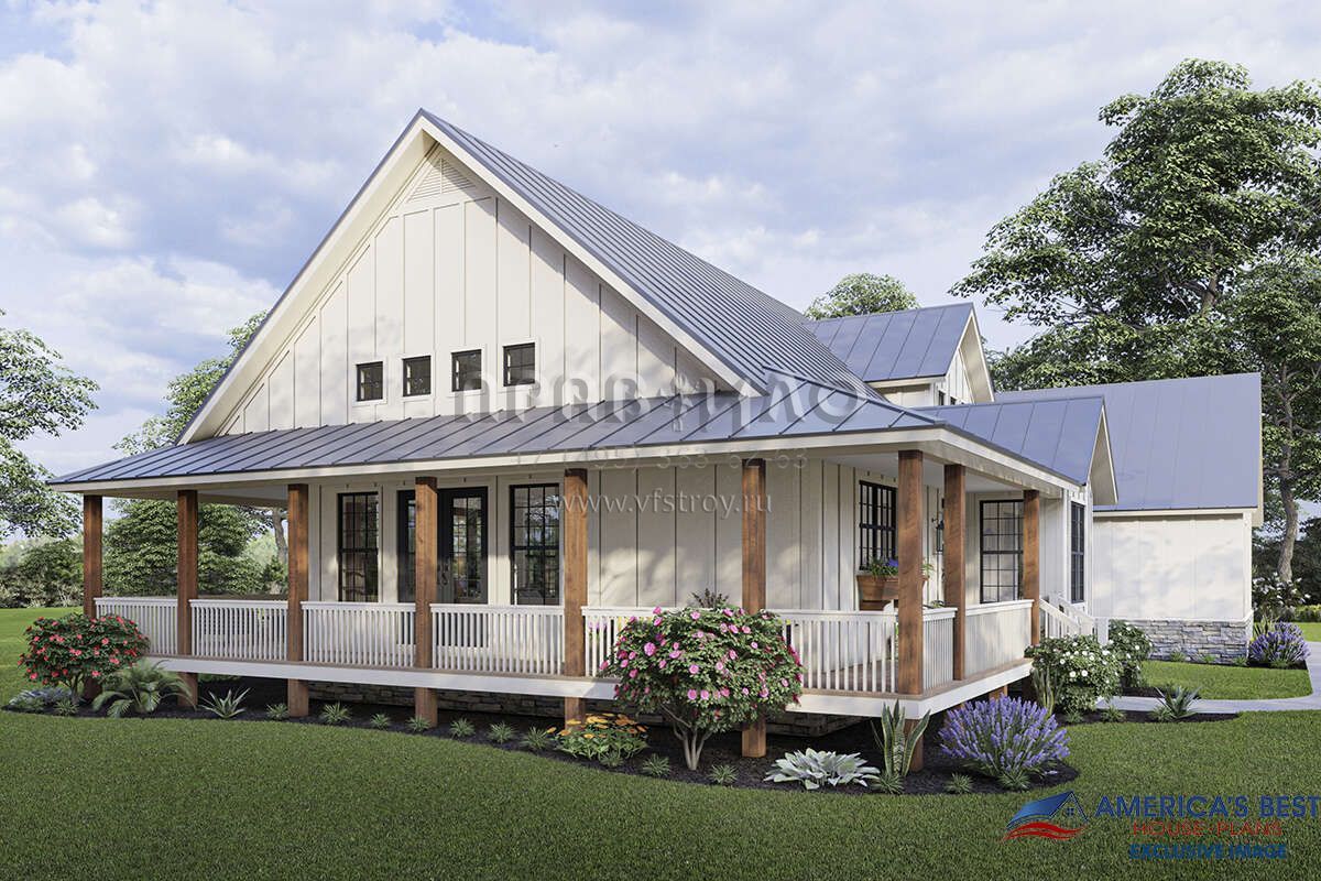 Проект двухэтажного дома с гаражом на две машины в стиле Ранчо S5-212 (940-00314)