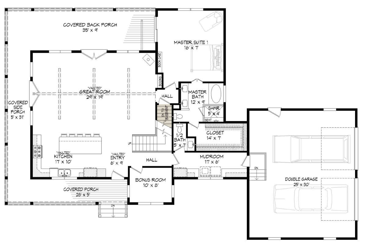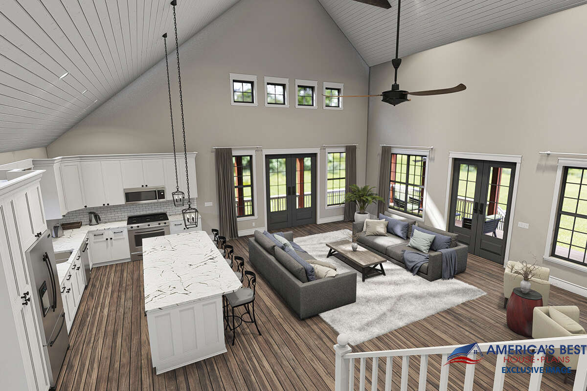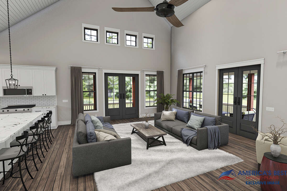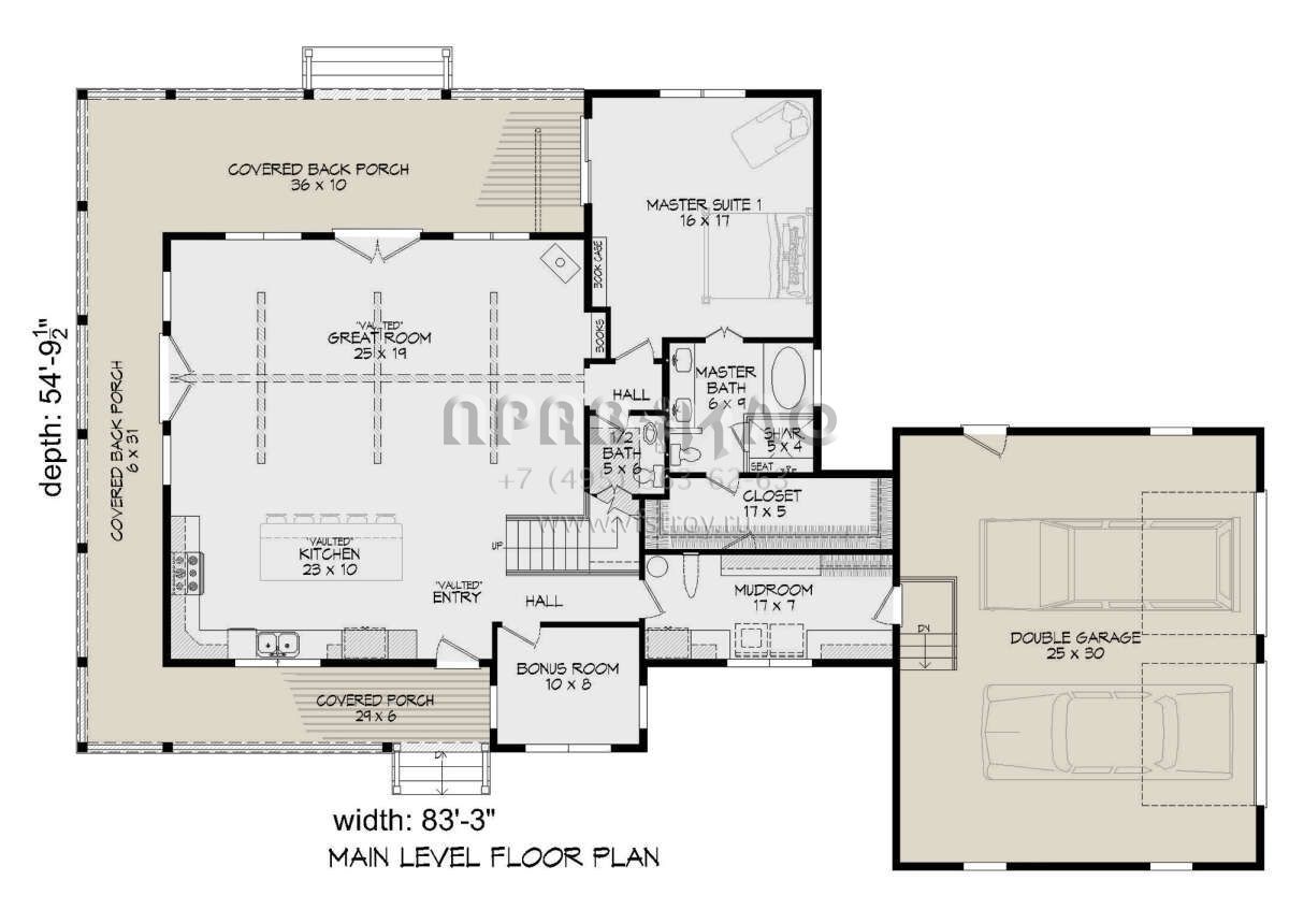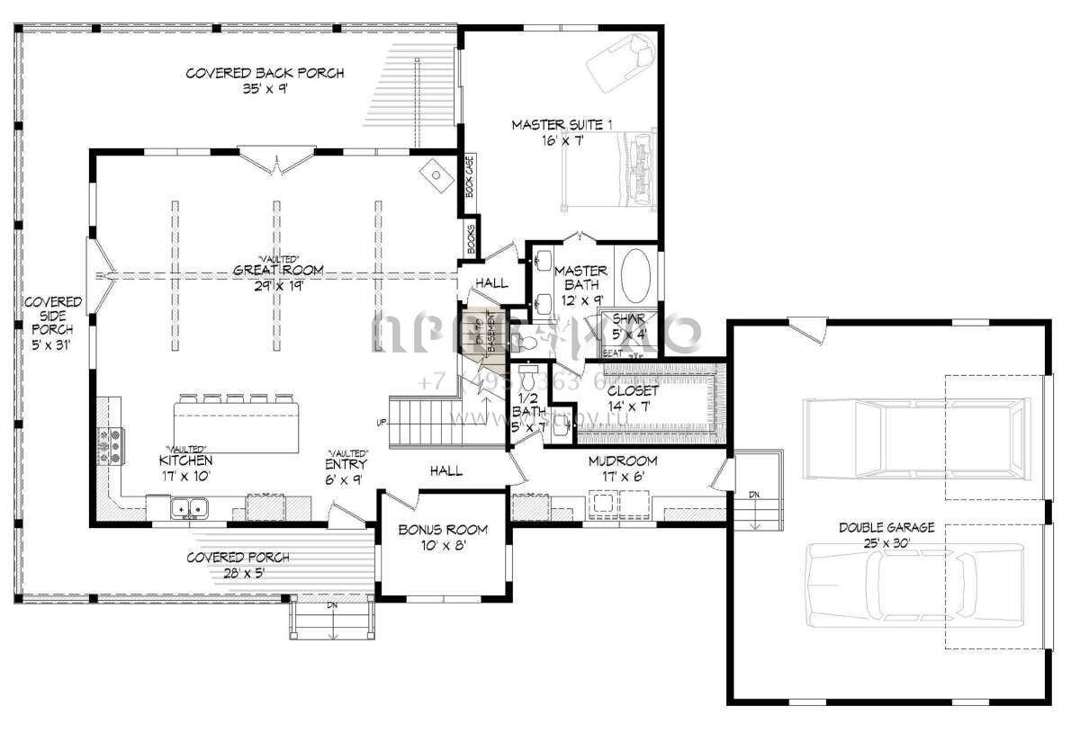 Проект двухэтажного дома с гаражом на две машины в стиле Ранчо S5-212 (940-00314)