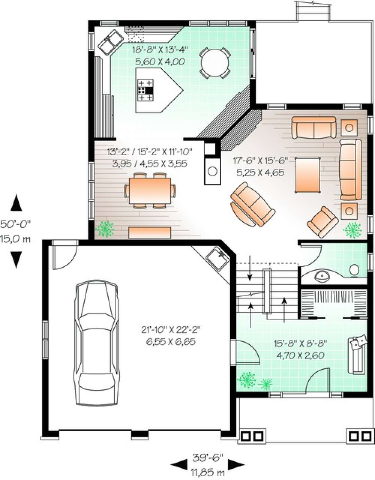 S5-213 (034-00742) Это иностранный проект, для которого требуется адаптация под нормы, действующие в Российской Федерации. Вы видите проект дома в скандинавском стиле. В этом доме сочетаются черты сельской постройки и аскетичность лофта. Внутри жильцы смогут проводить время с максимальным комфортом. Обратим внимание, что сейчас на планировках все размеры представлены в футах. Для перевода в метры вам необходимо значение в футах умножить на 0,3048.