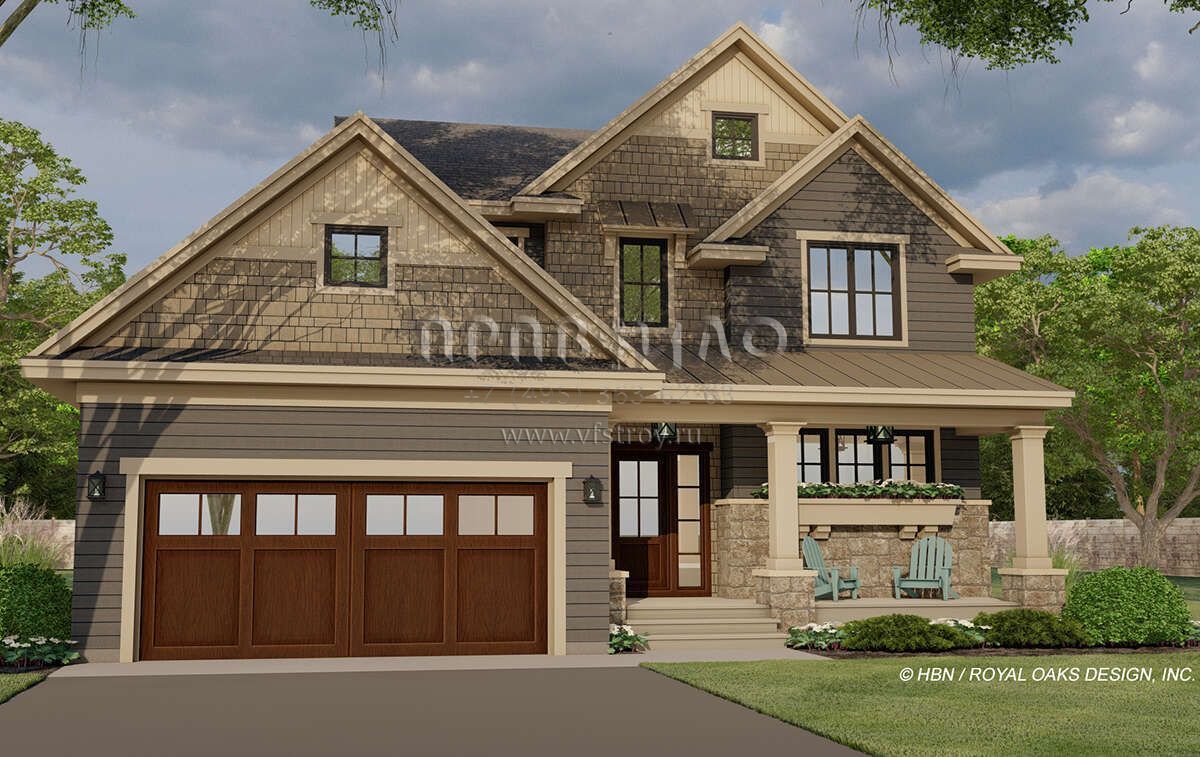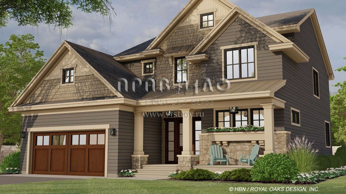 Проект двухэтажного дома с гаражом на две машины в американском стиле S5-213 (098-00358)