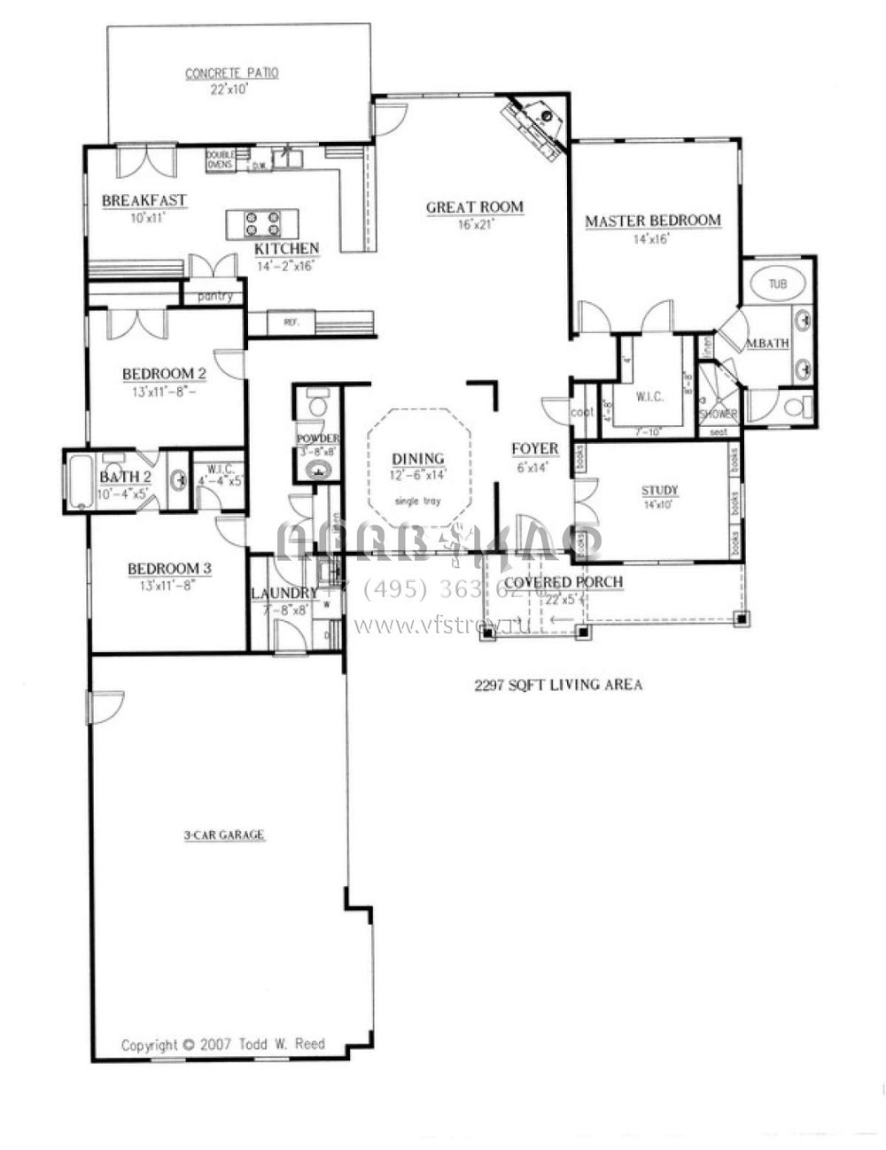 Проект одноэтажного дома с гаражом на три и более машин в стиле Ранчо S5-213 (286-00052)