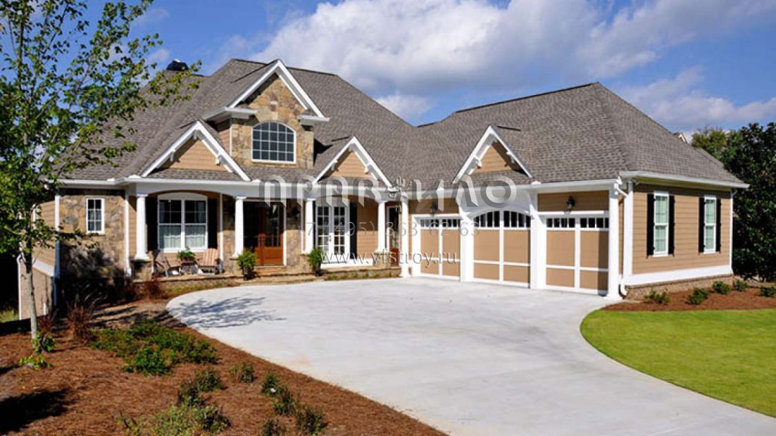 Проект одноэтажного дома с гаражом на три и более машин в американском стиле S5-213 (286-00056)
