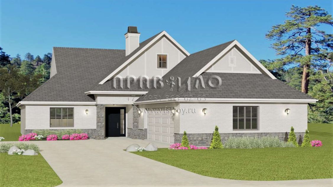 Проект двухэтажного дома с гаражом на две машины в стиле Ранчо S5-213 (3125-00002)