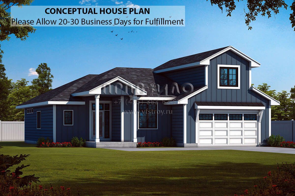 Проект двухэтажного дома с гаражом на две машины в стиле Ранчо S5-213 (402-01769)