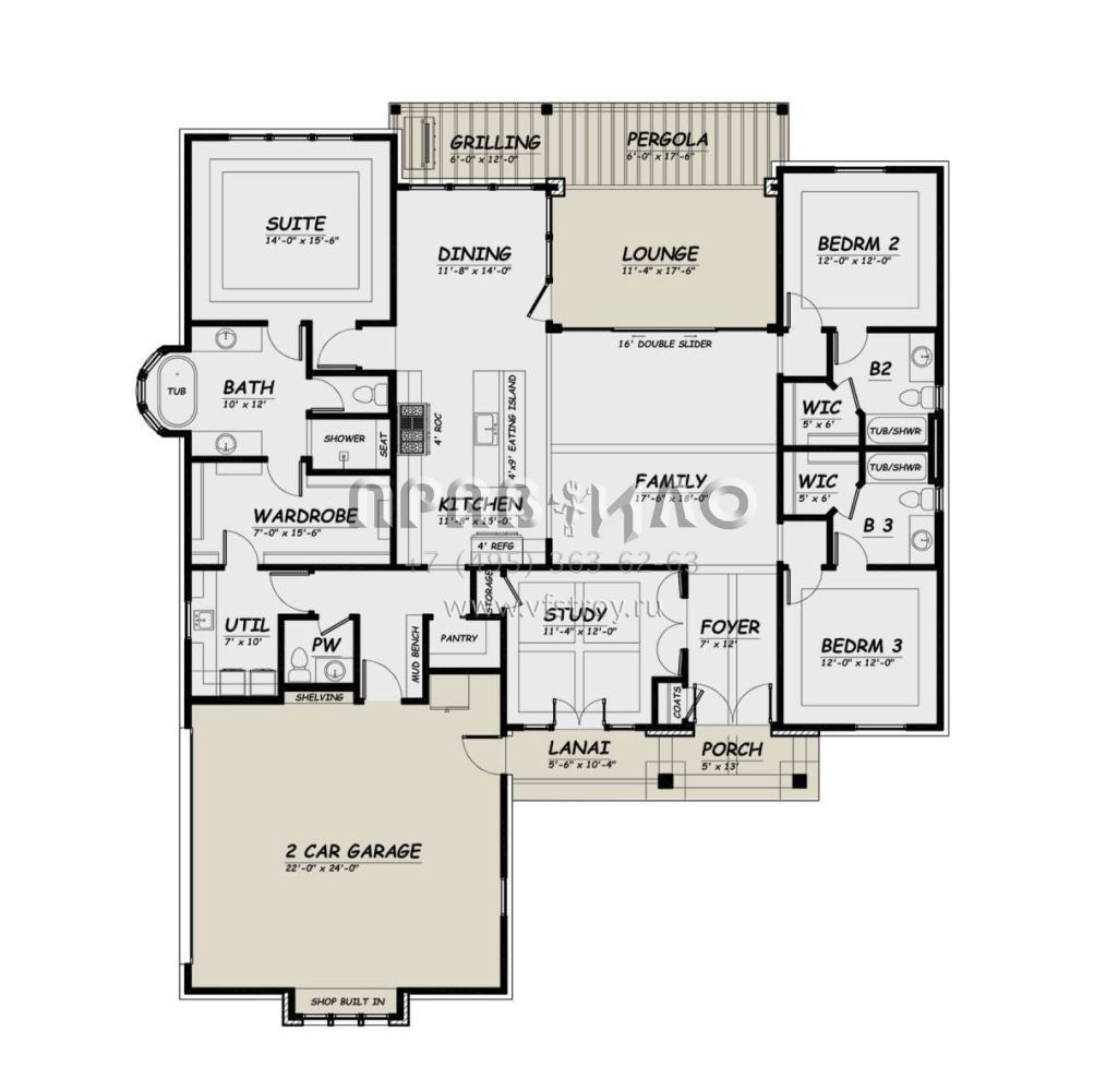 Проект одноэтажного дома с гаражом на две машины в современном стиле S5-213 (5445-00488)