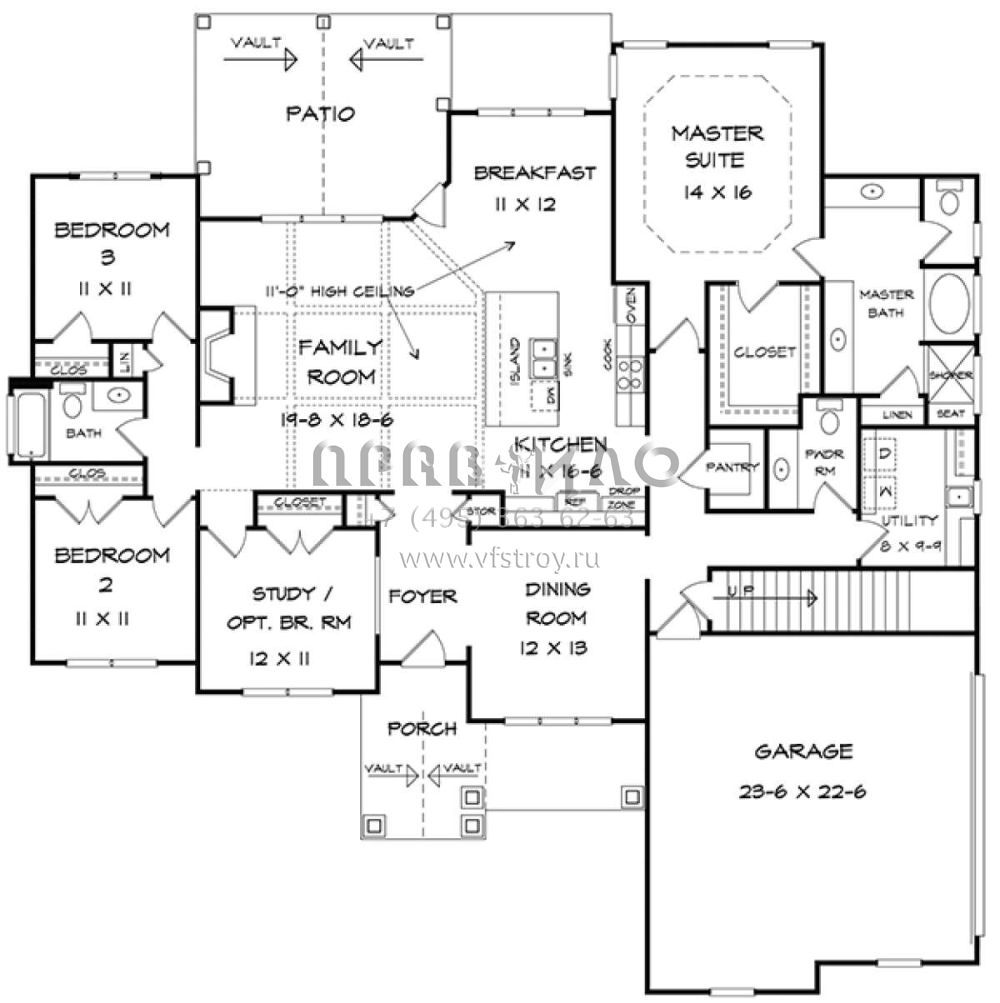 Проект одноэтажного дома с гаражом на две машины в американском стиле S5-213 (6082-00019)