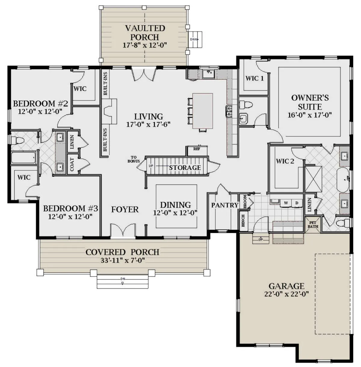 Проект одноэтажного дома с гаражом на две машины в стиле Особняк S5-213 (6849-00097)