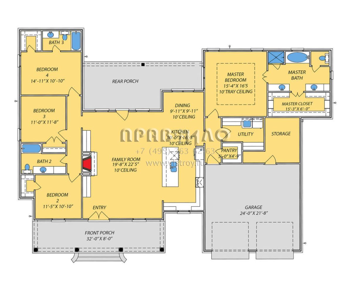 Проект одноэтажного дома с гаражом на две машины в стиле Ранчо S5-213 (9279-00038)