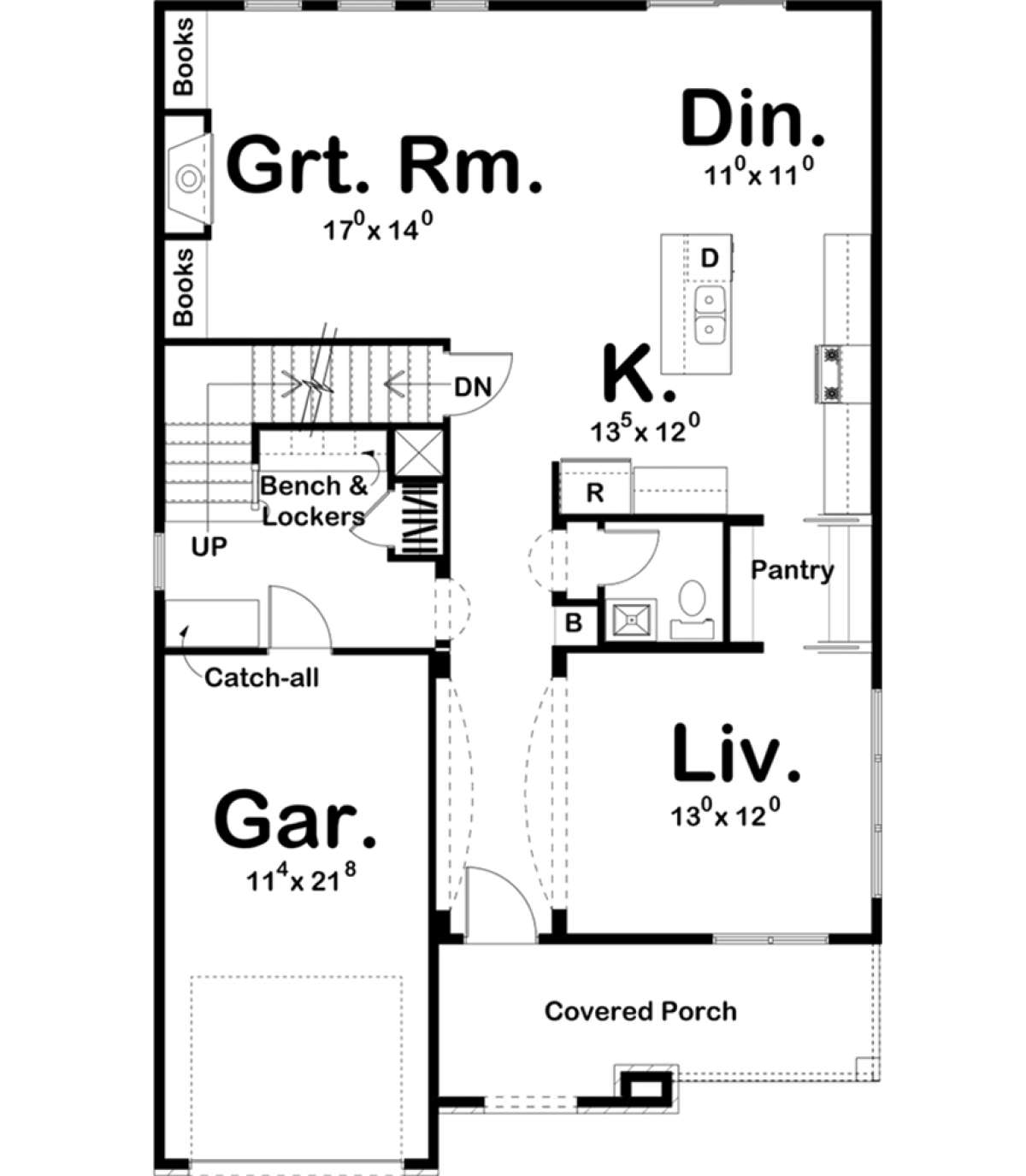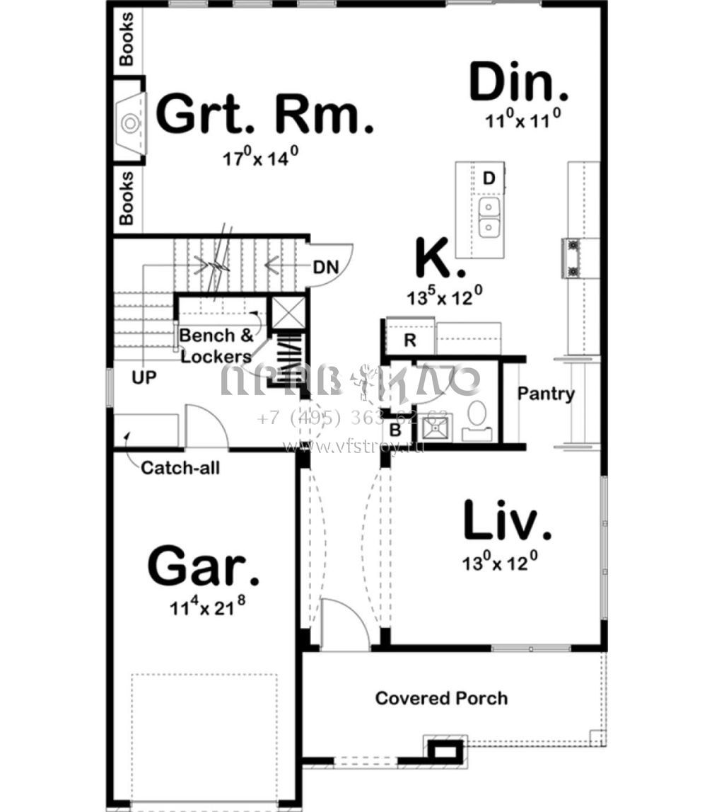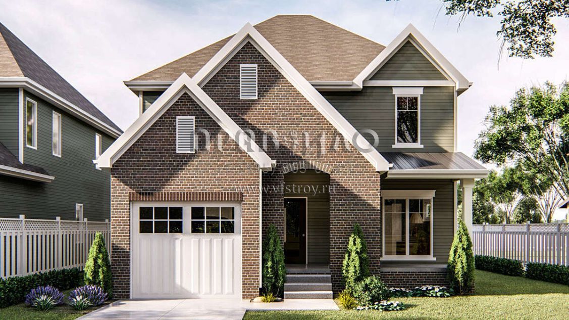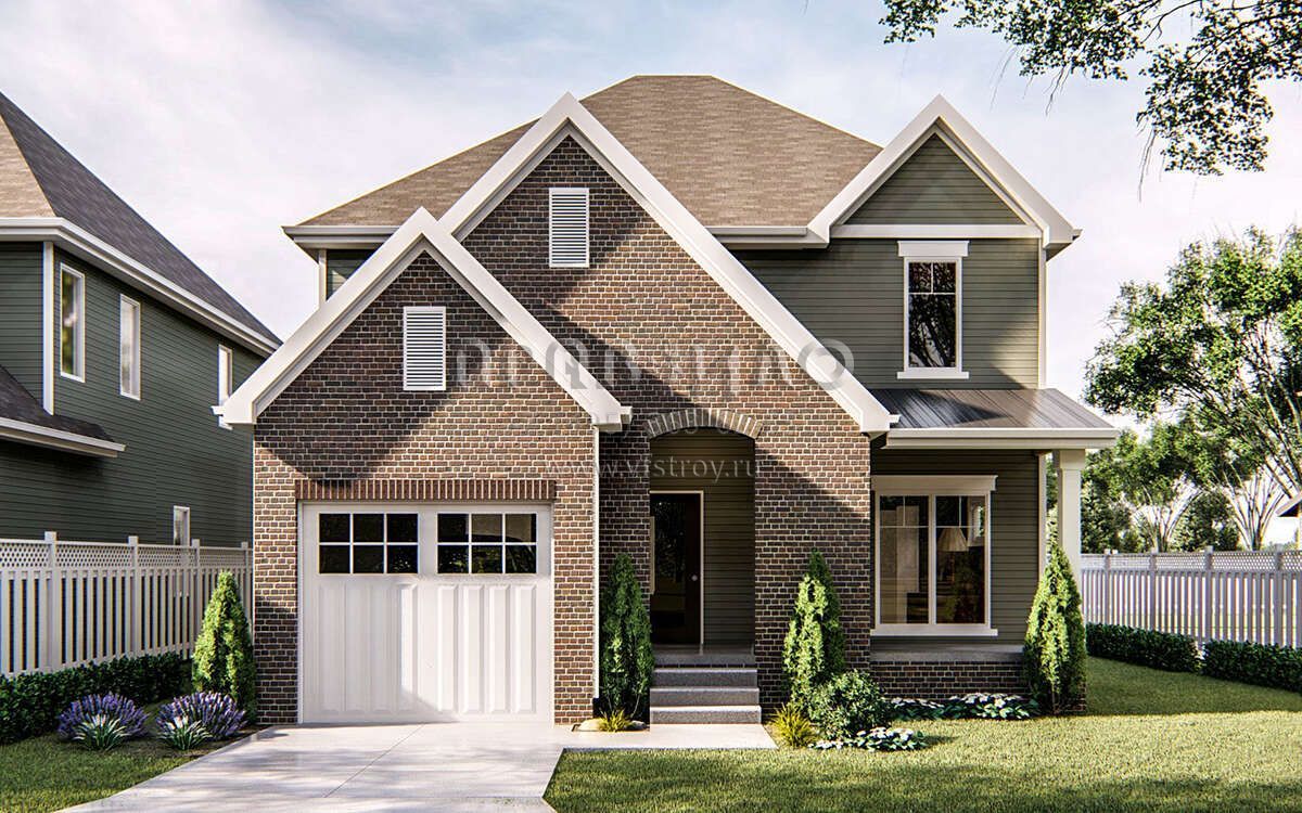 Проект двухэтажного дома с гаражом на одну машину в стиле Ранчо S5-213 (963-00227)