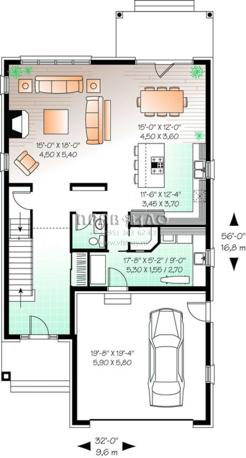 Проект двухэтажного дома с гаражом на две машины в английском стиле S5-214 (034-00847)