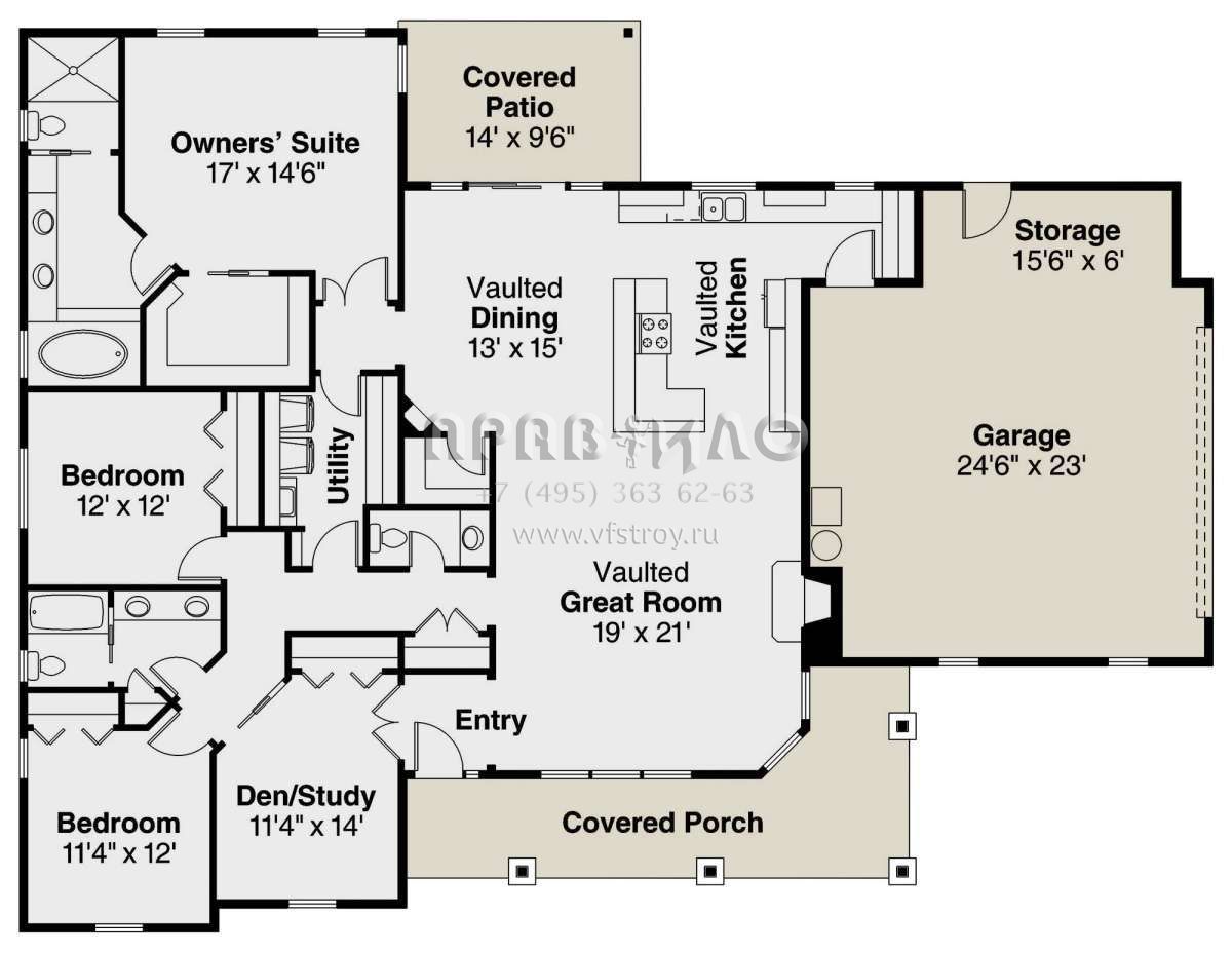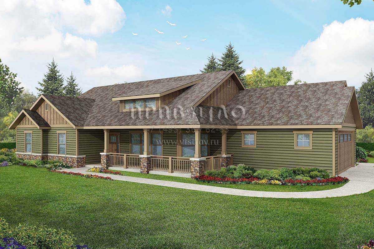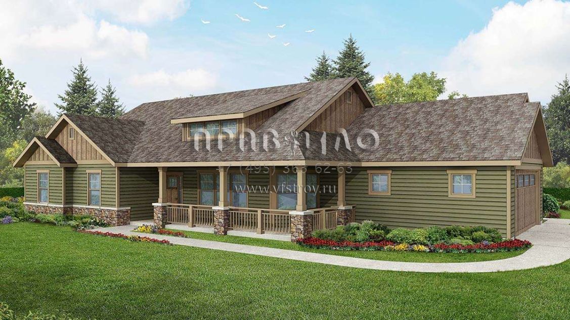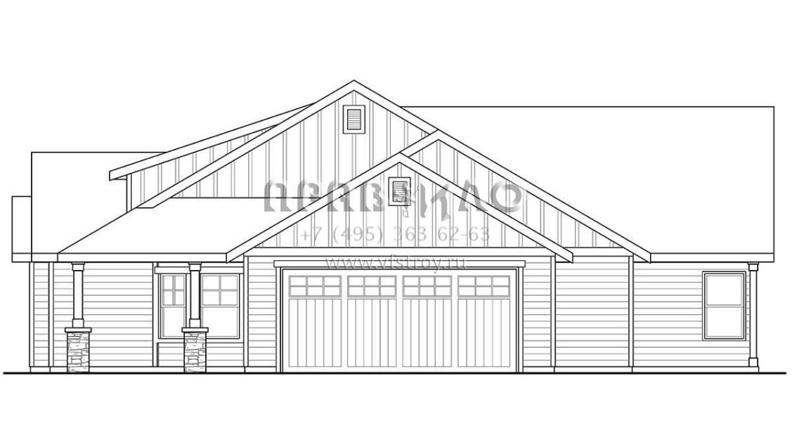 Проект одноэтажного дома с гаражом на две машины в стиле Ранчо S5-214 (035-00832)