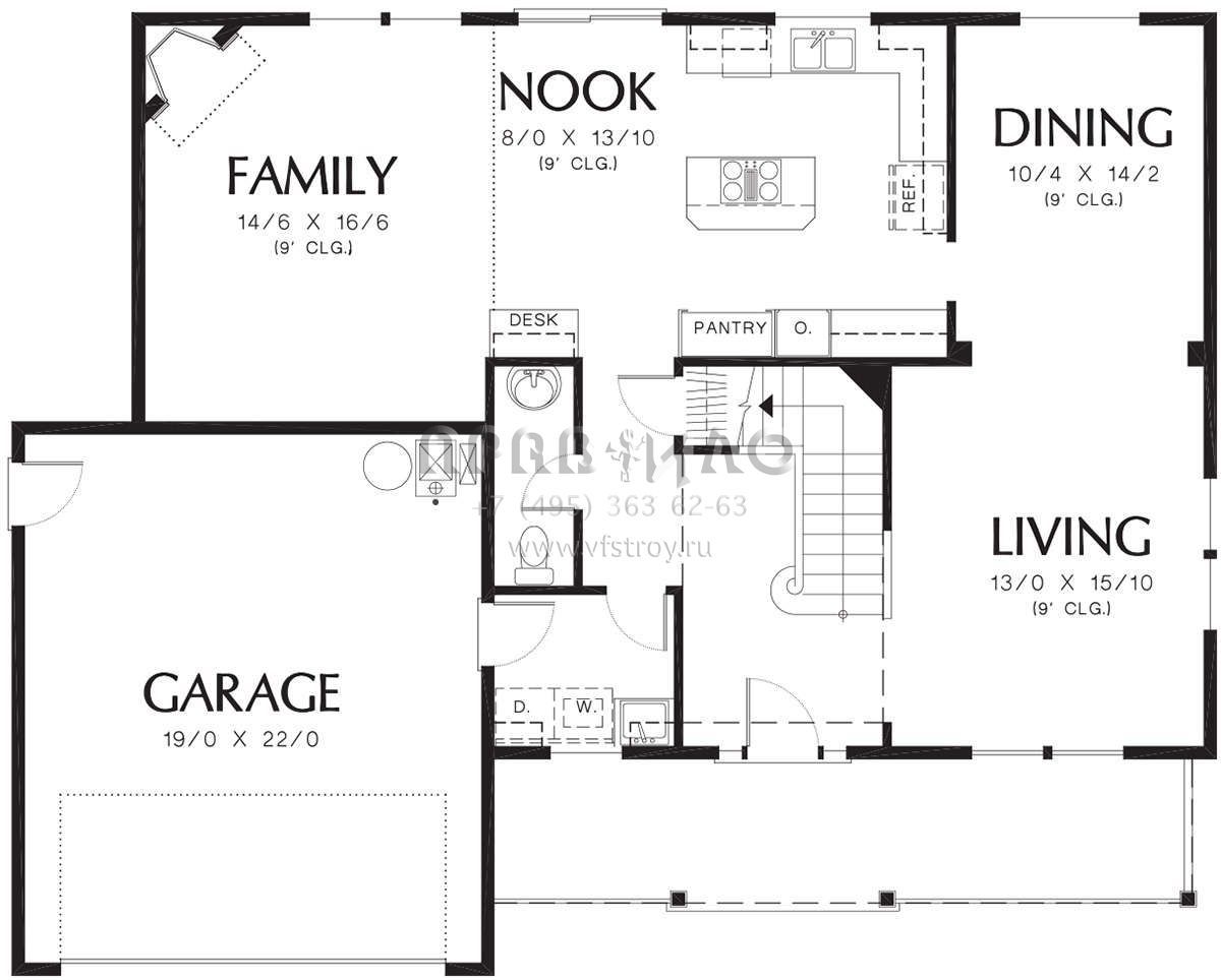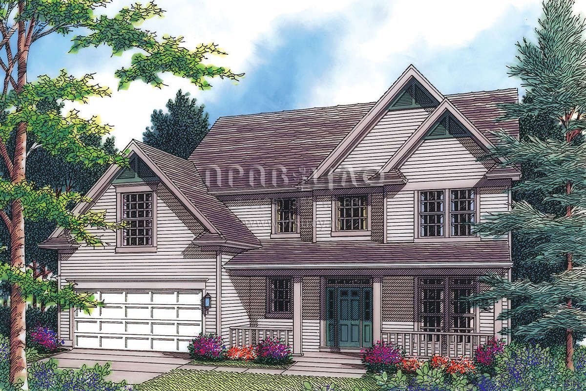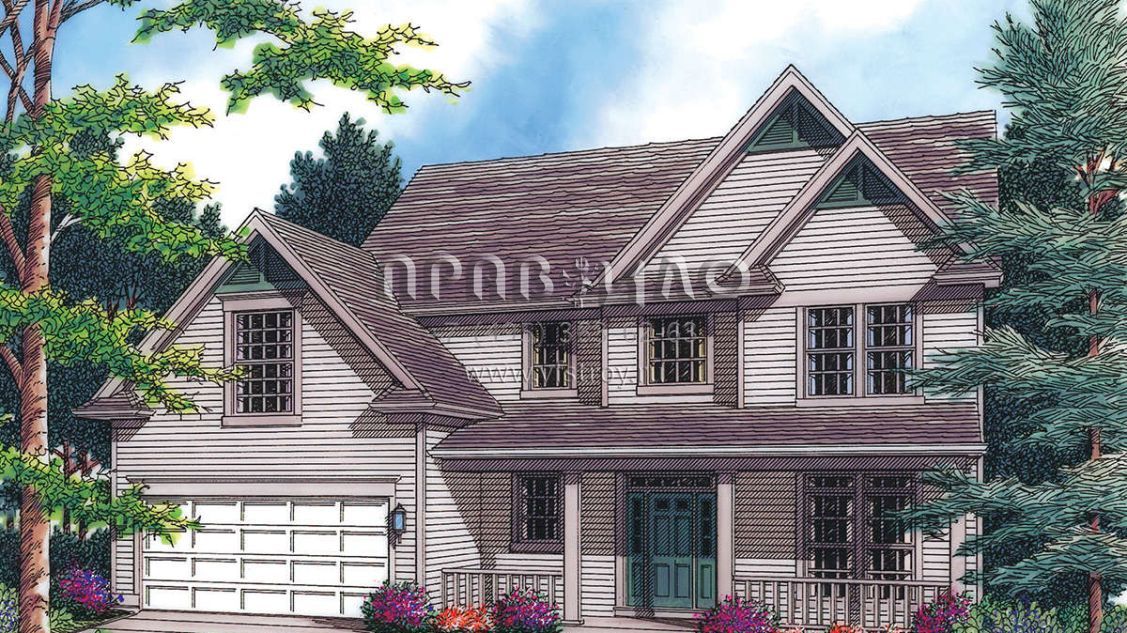 Проект двухэтажного дома с гаражом на две машины в стиле Ранчо S5-214 (2559-00441)