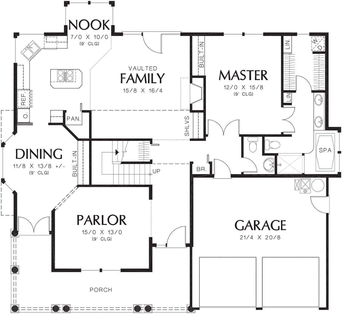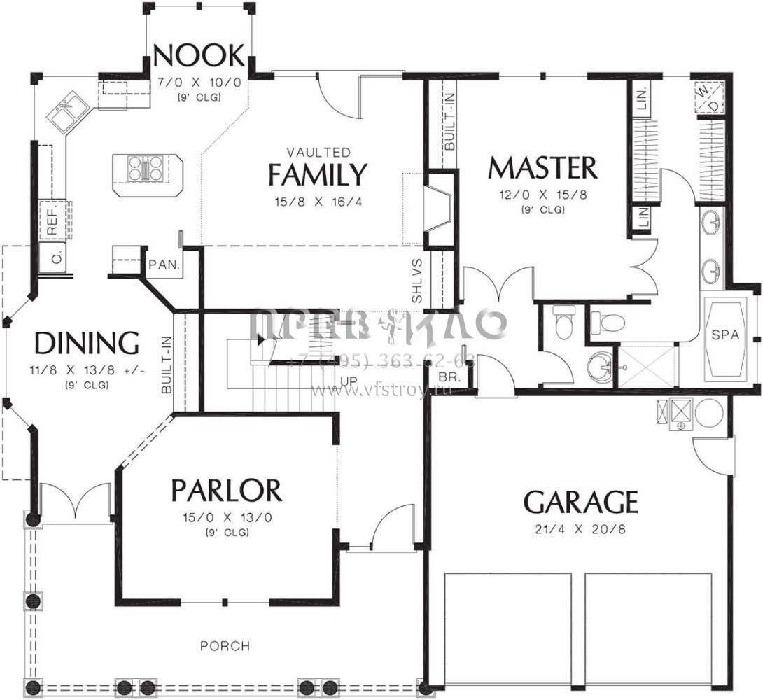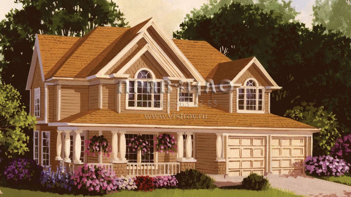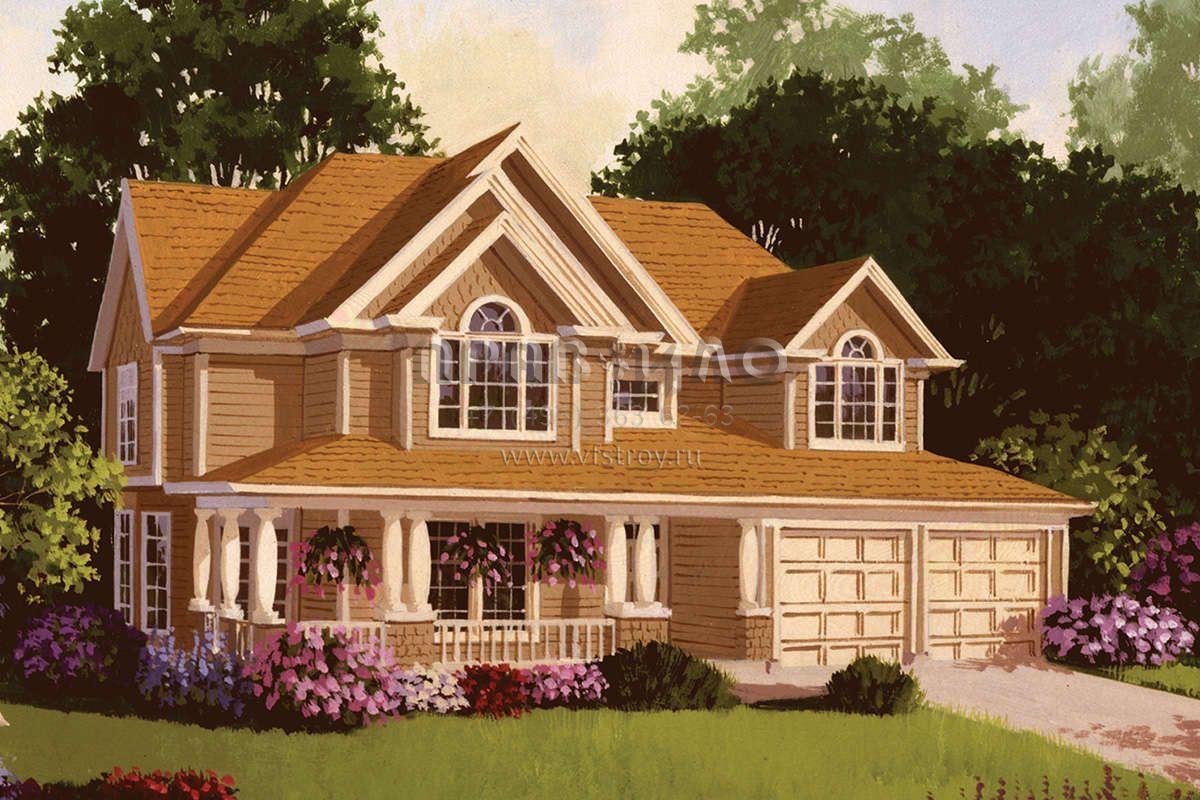 Проект двухэтажного дома с гаражом на две машины в стиле Ранчо S5-214 (2559-00479)