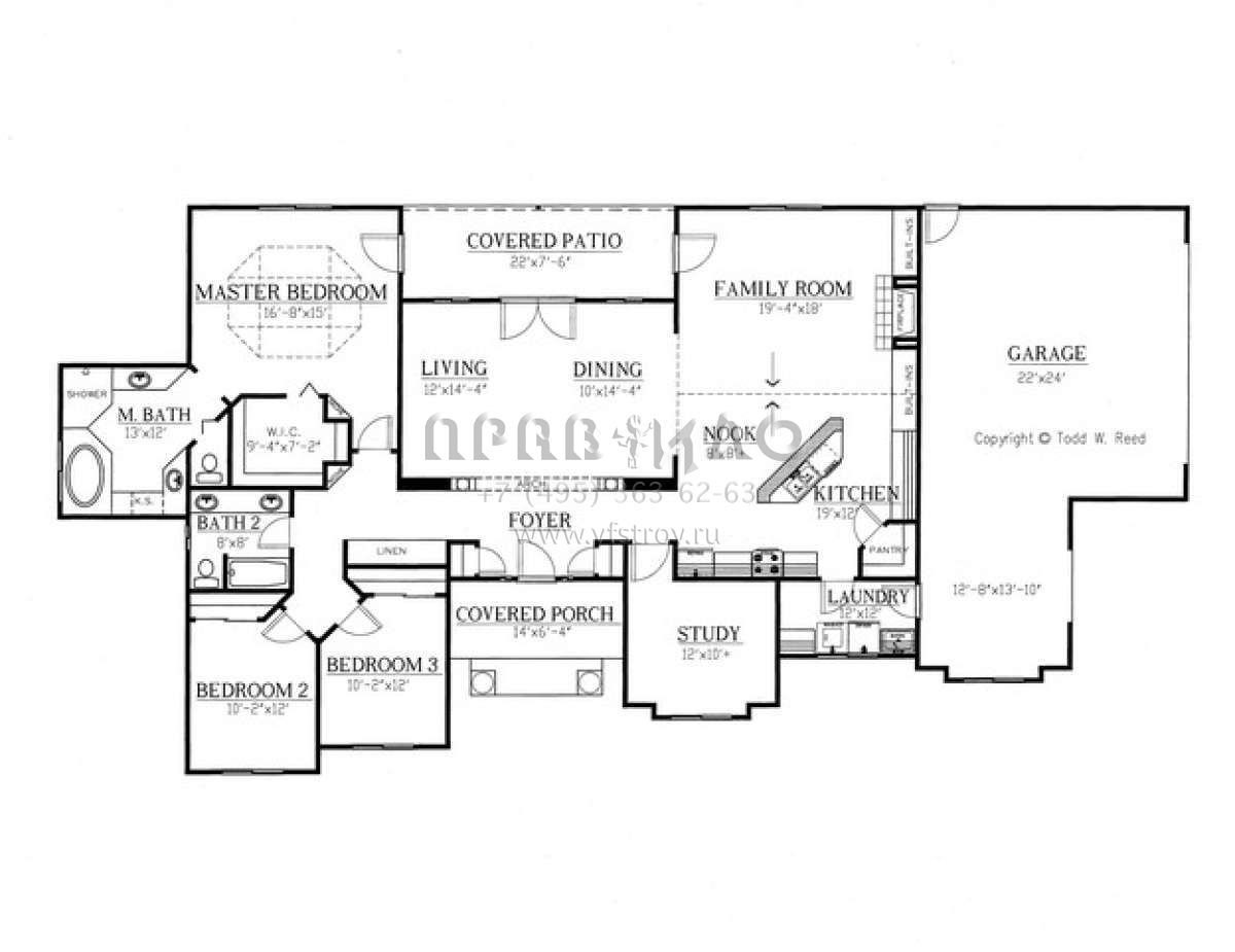 Проект одноэтажного дома с гаражом на две машины в прибрежном стиле S5-214 (286-00028)