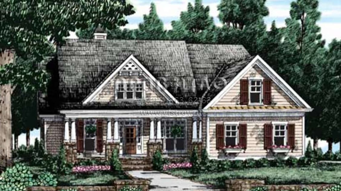 Проект двухэтажного дома с гаражом на две машины в стиле Ранчо S5-214 (8594-00306)