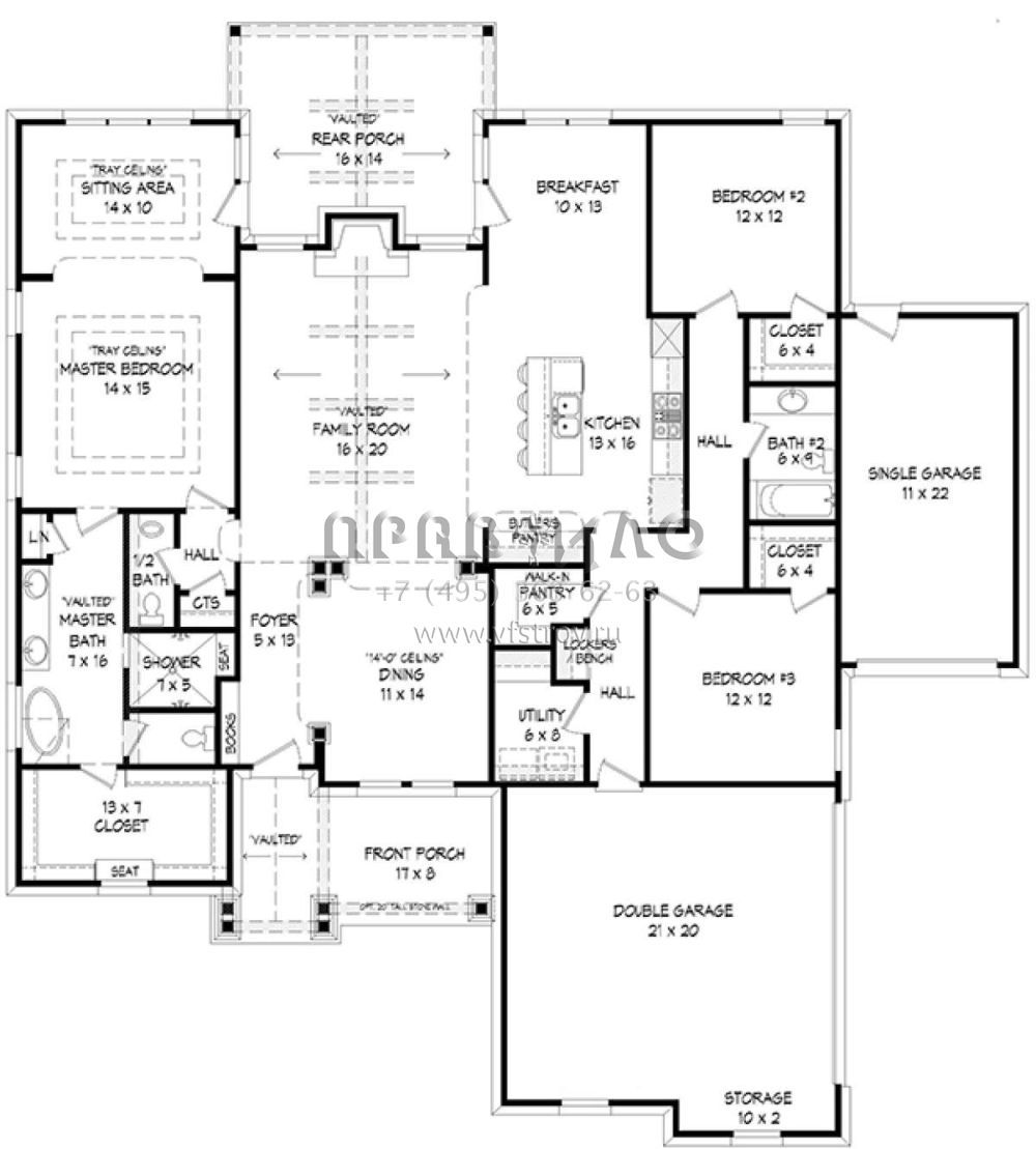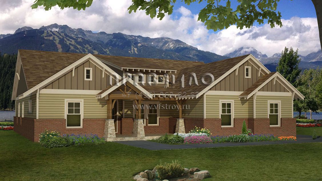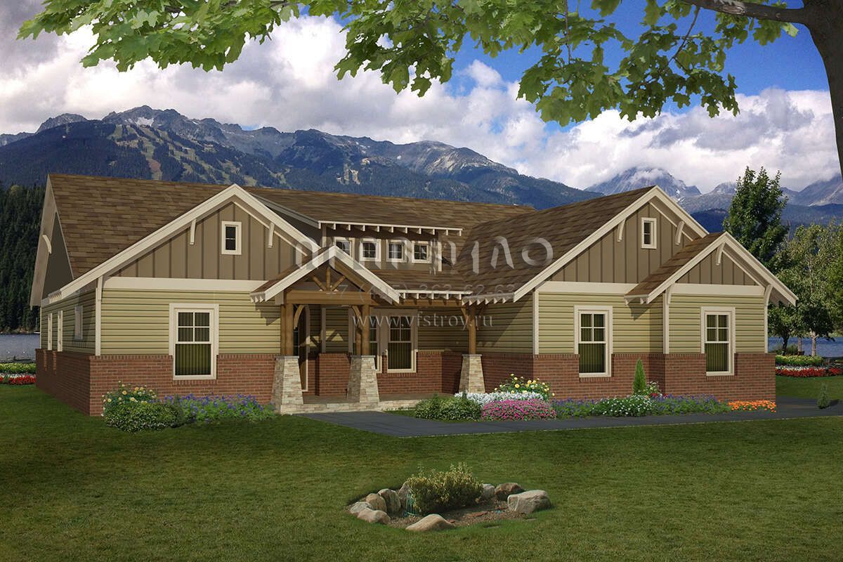 Проект одноэтажного дома с гаражом на три и более машин в американском стиле S5-214 (940-00007)