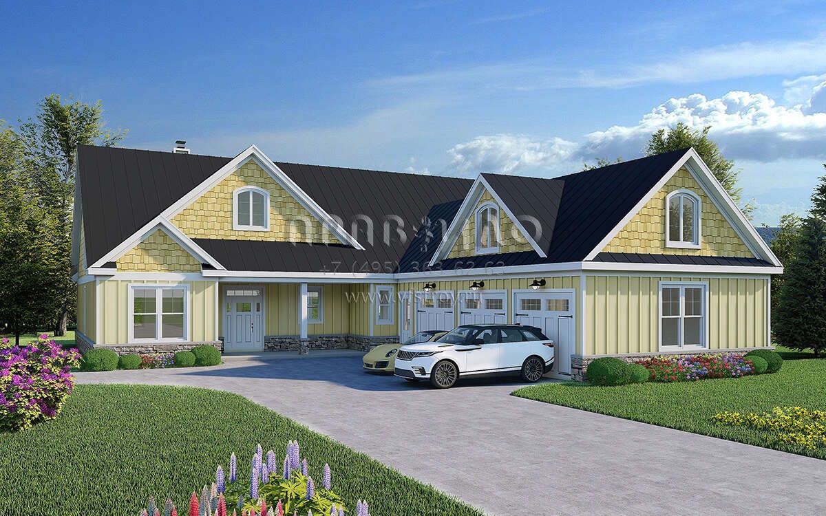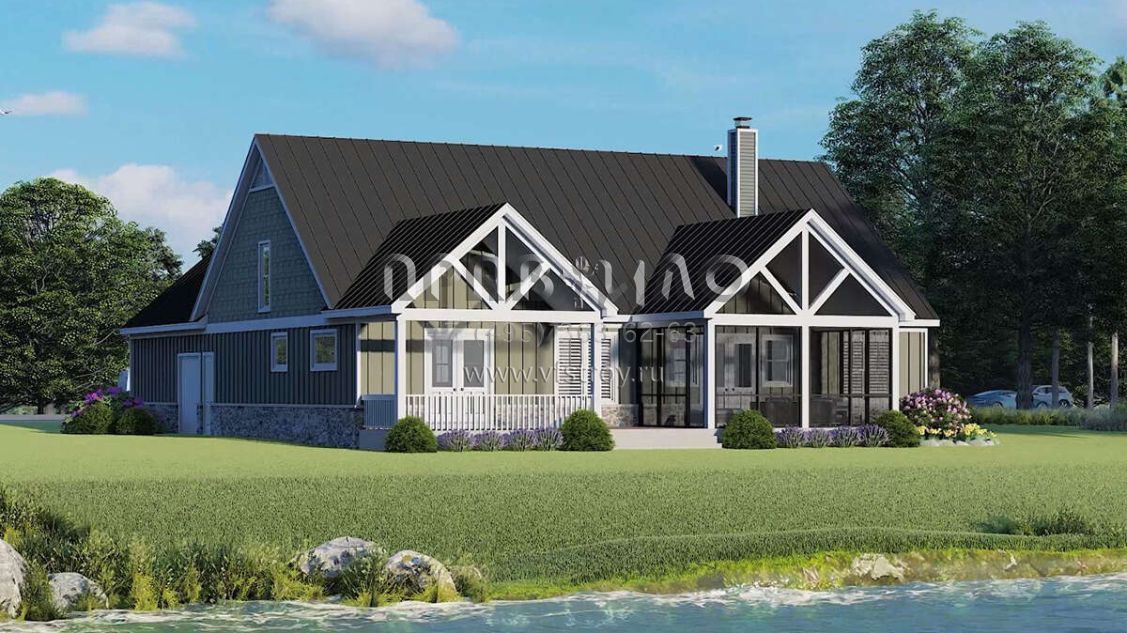 Поскольку этот проект разрабатывался иностранными архитекторами, для строительства дома требуется переработка проекта под действующие в России нормы. Данные визуализации проекта представлены для ознакомления с концепцией проекта. Проект разработан американским архитектурным бюро и представлен America's Best House Plans.