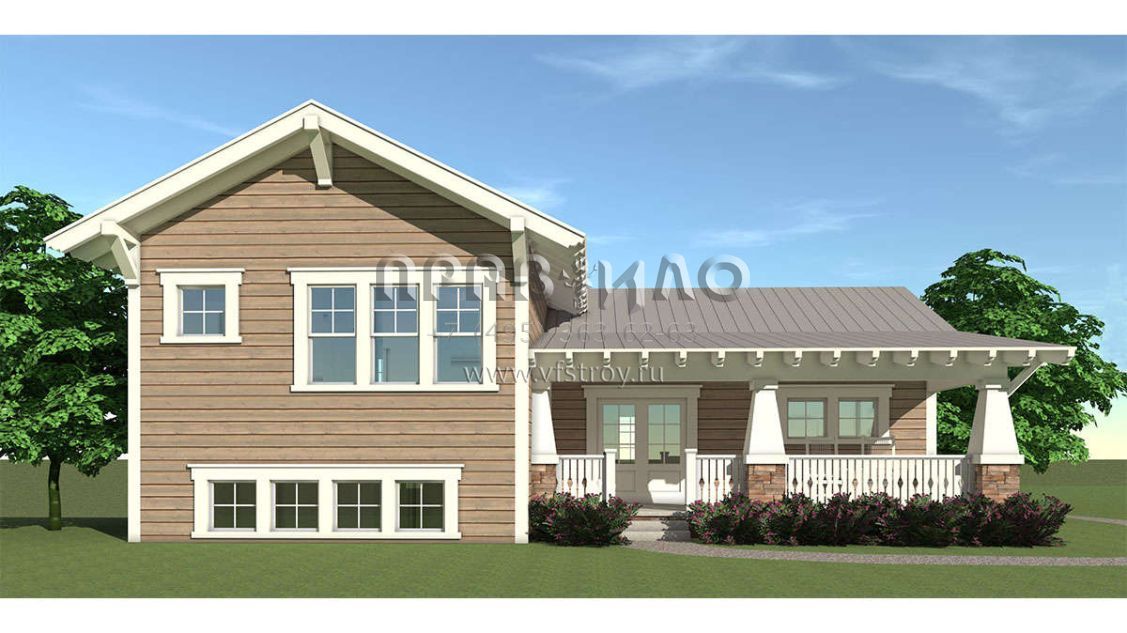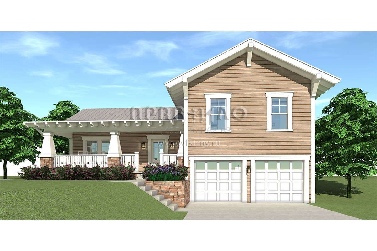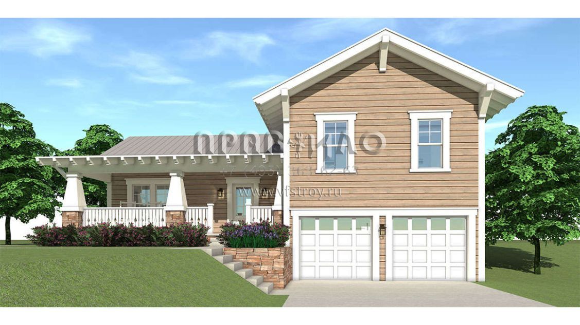 Проект двухэтажного дома с гаражом на две машины в стиле Ранчо S5-215 (028-00099)