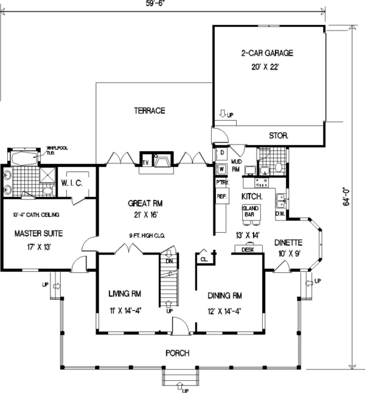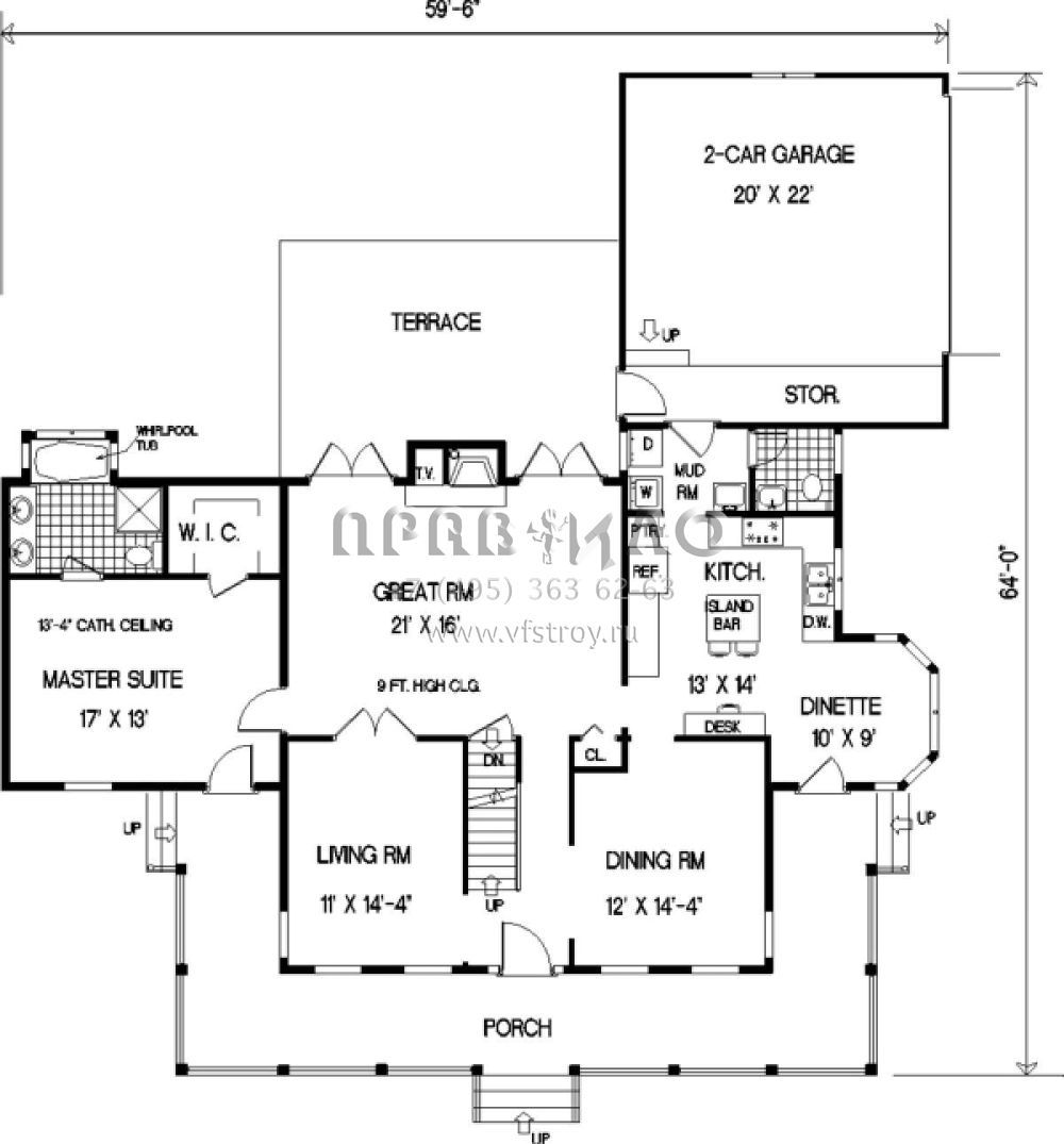 Проект двухэтажного дома с гаражом на две машины в стиле Ранчо S5-215 (033-00014)