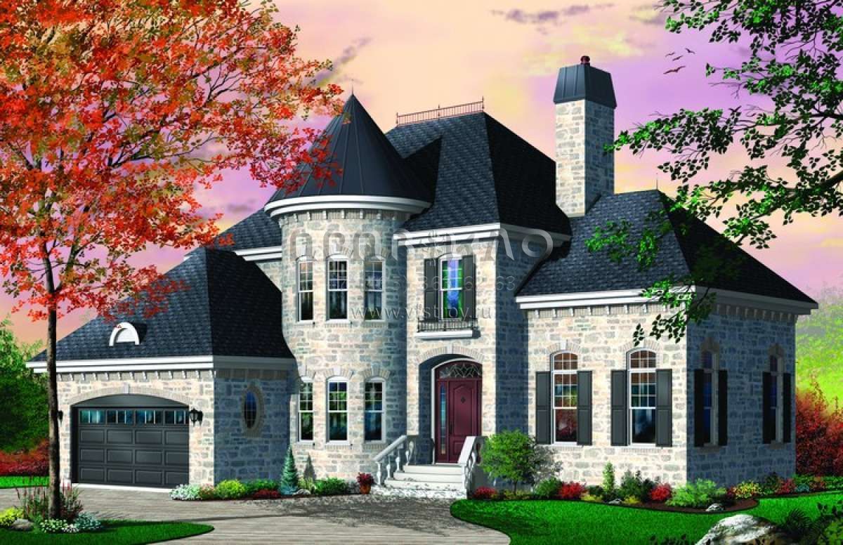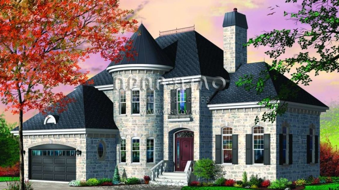 Проект двухэтажного дома с гаражом на две машины в английском стиле S5-215 (034-00721)