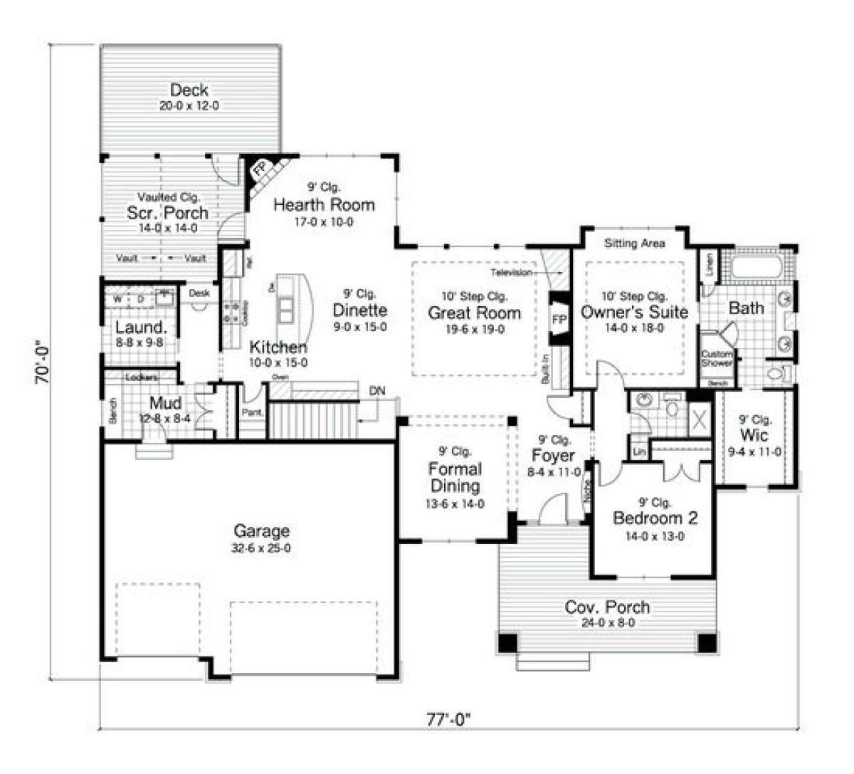 Проект одноэтажного дома с гаражом на три и более машин в стиле Ранчо S5-215 (098-00013)