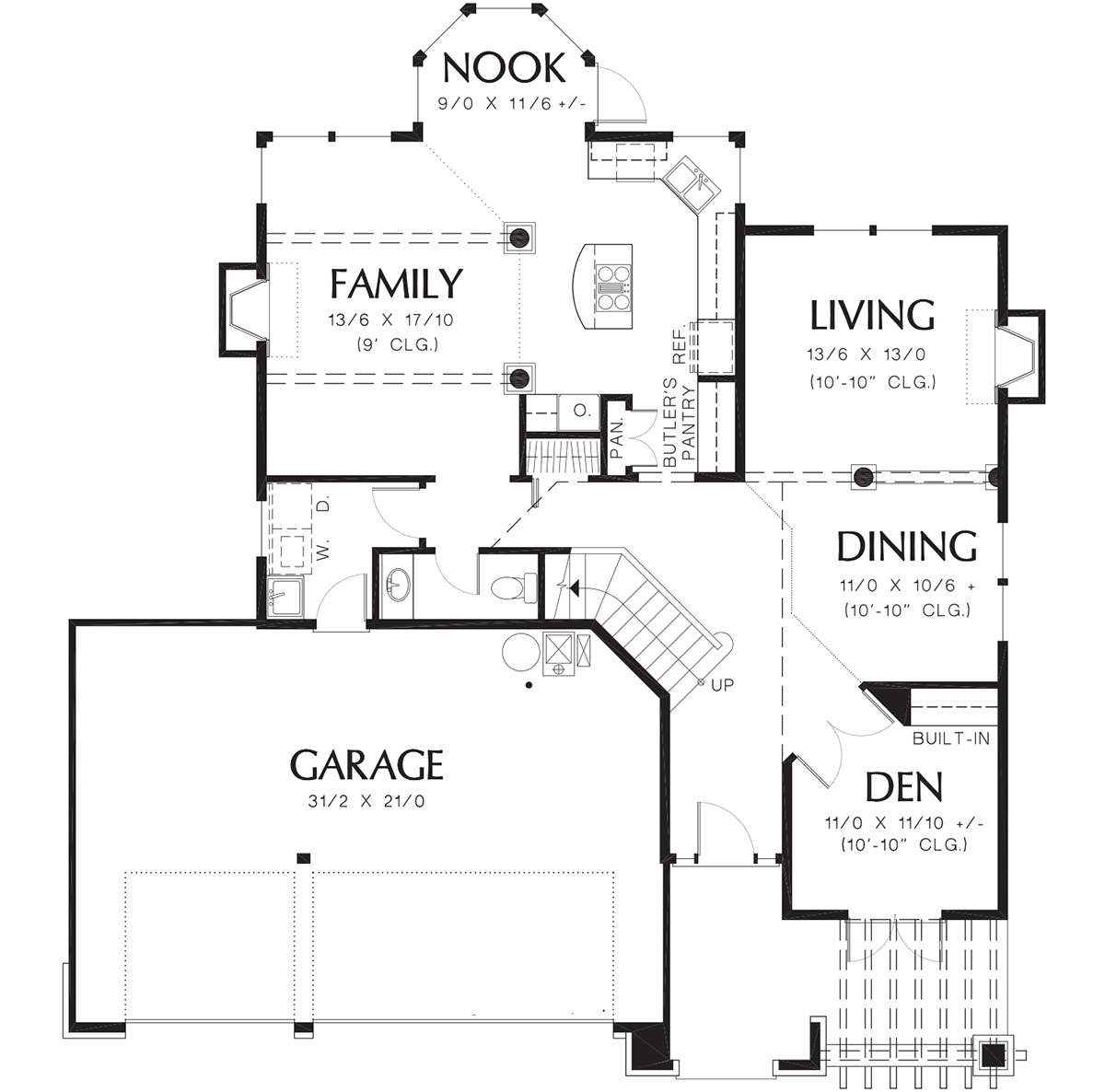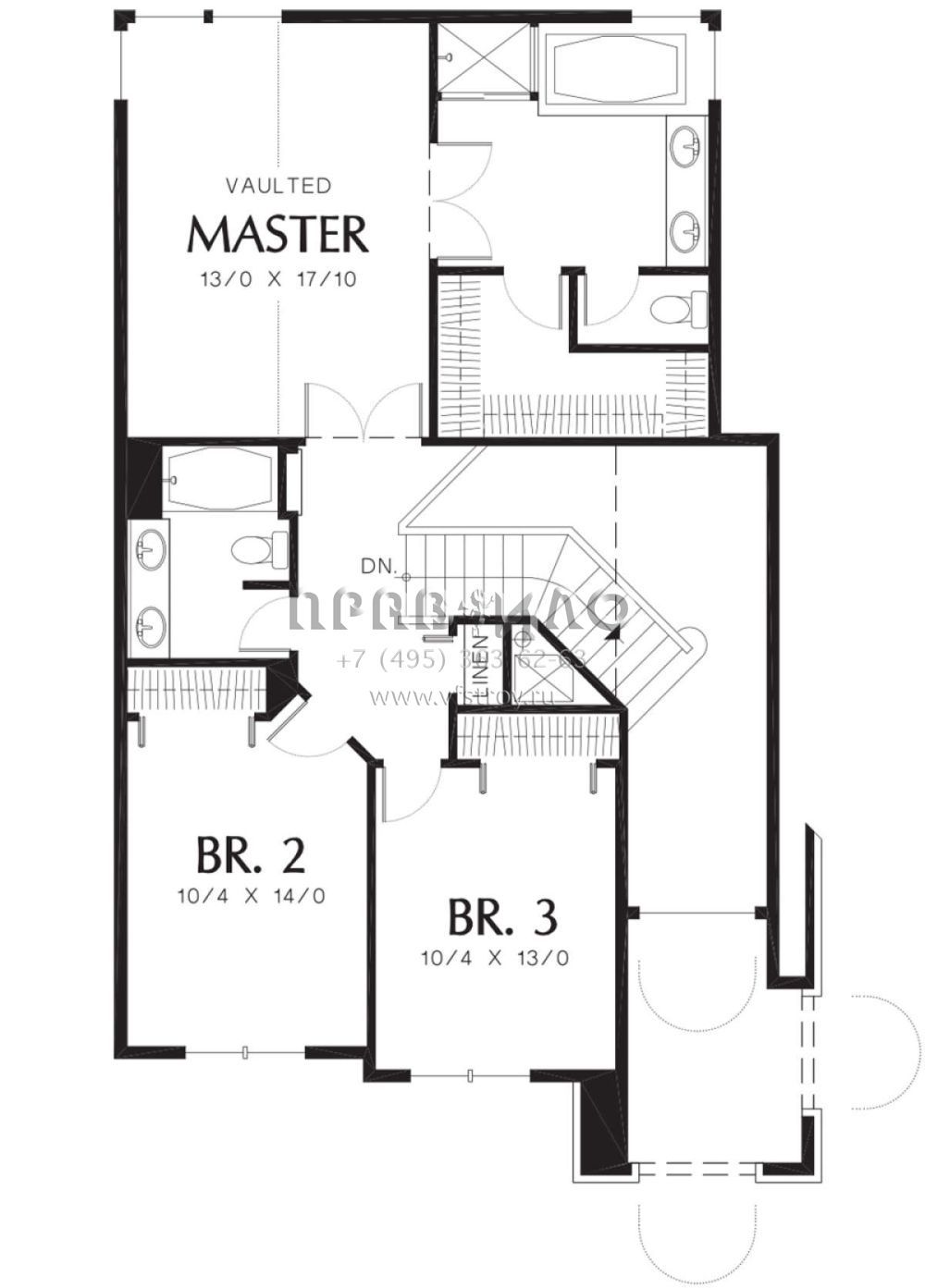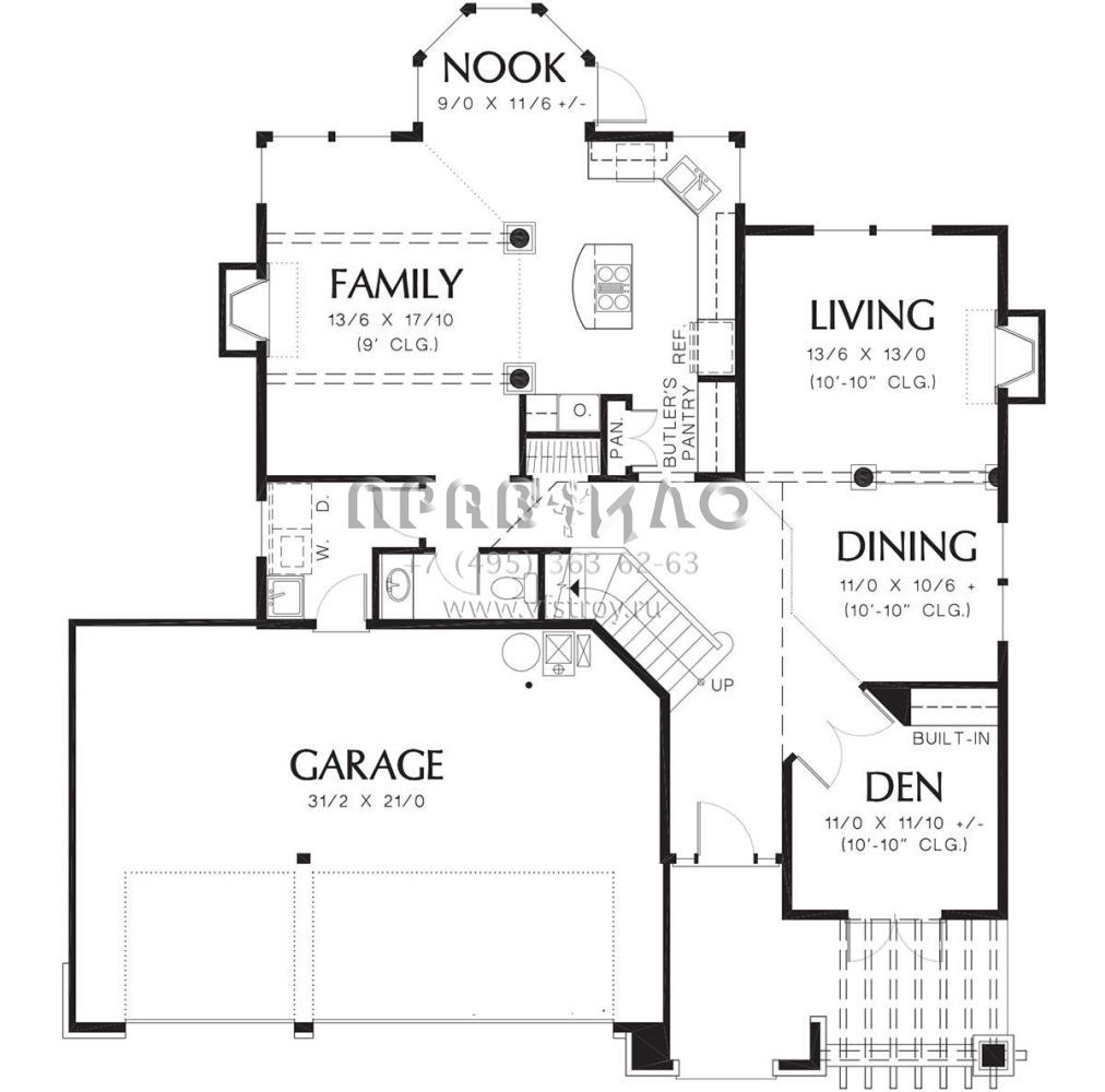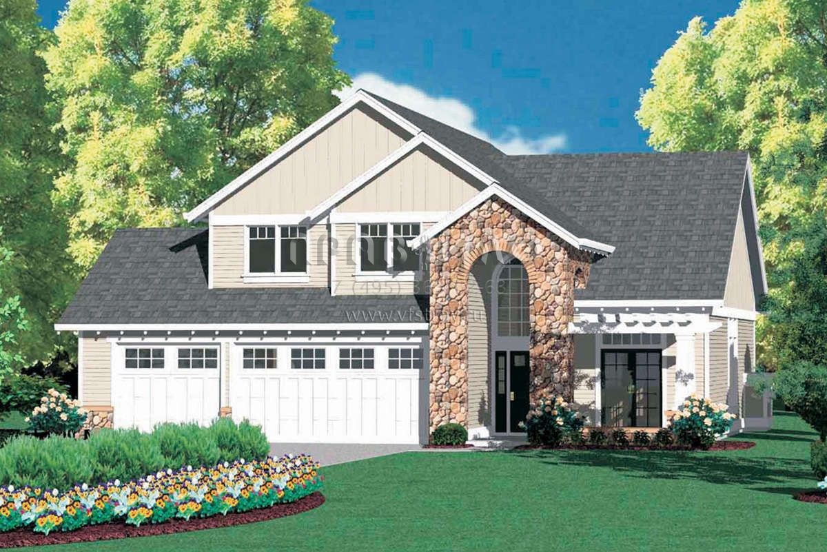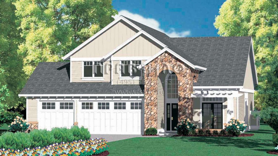 Проект двухэтажного дома с гаражом на три и более машин в стиле Ранчо S5-215 (2559-00459)