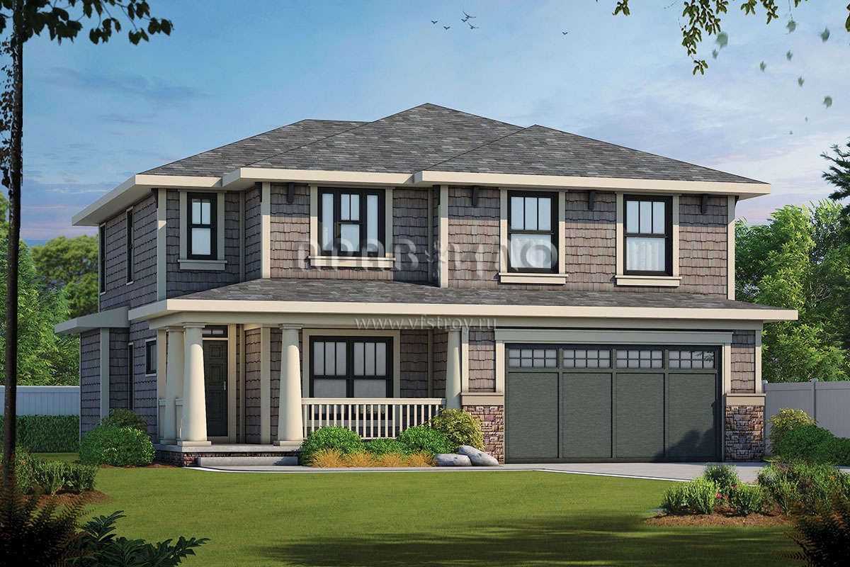 Проект двухэтажного дома с гаражом на две машины в стиле Райт S5-215 (402-01615)