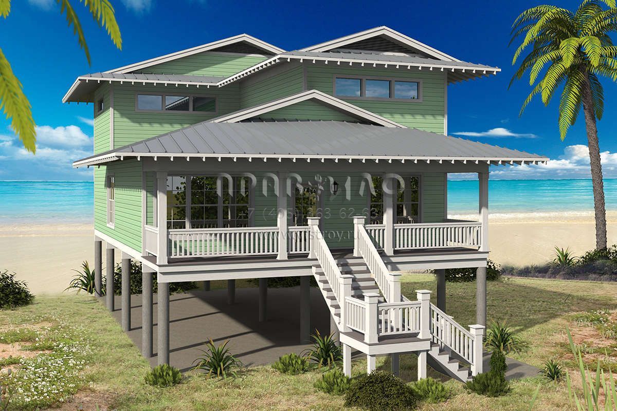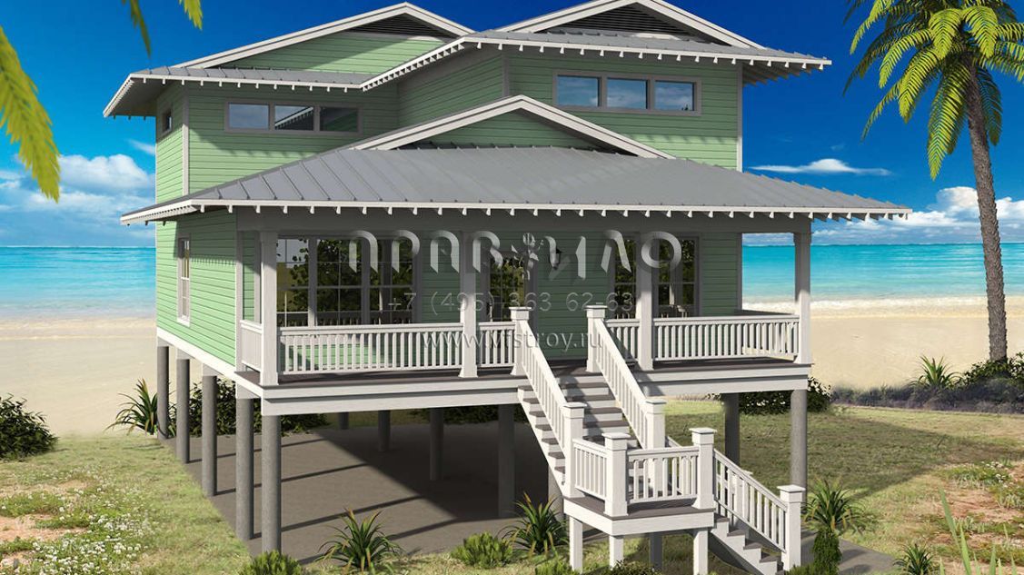 Проект двухэтажного дома с гаражом на две машины в прибрежном стиле S5-215 (940-00130)