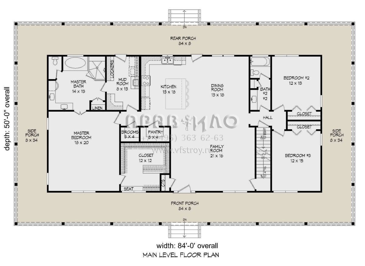 Проект одноэтажного дома без гаража в стиле Ранчо S5-215 (940-00941)