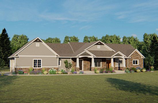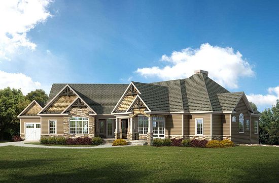 Проект одноэтажного дома с гаражом на две машины в американском стиле S5-216 (041-00156)