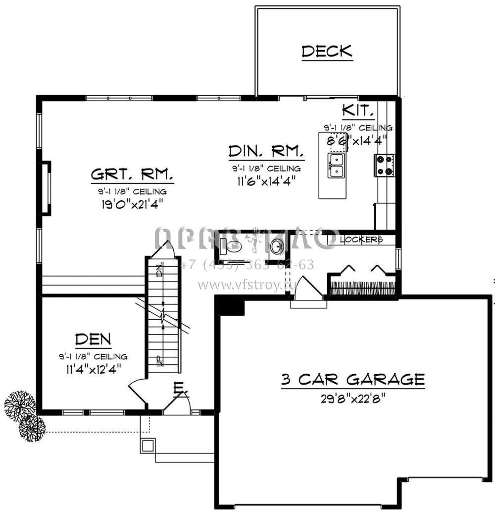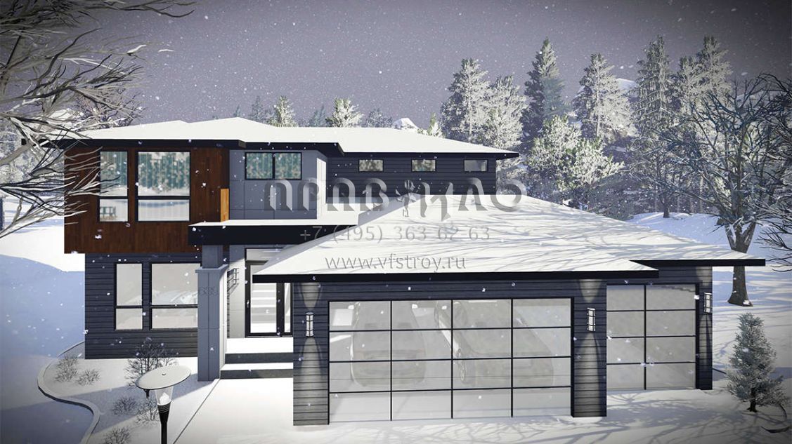 Проект двухэтажного дома с гаражом на три и более машин в стиле Райт S5-216 (1020-00015)