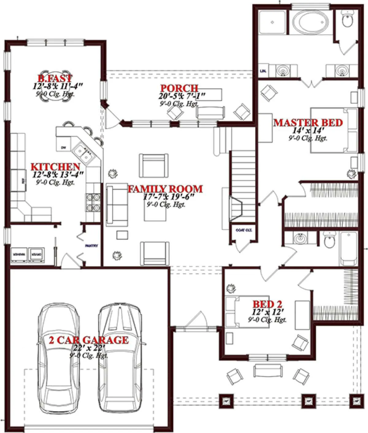 Проект одноэтажного дома с гаражом на две машины в стиле Ранчо S5-216 (1070-00226)