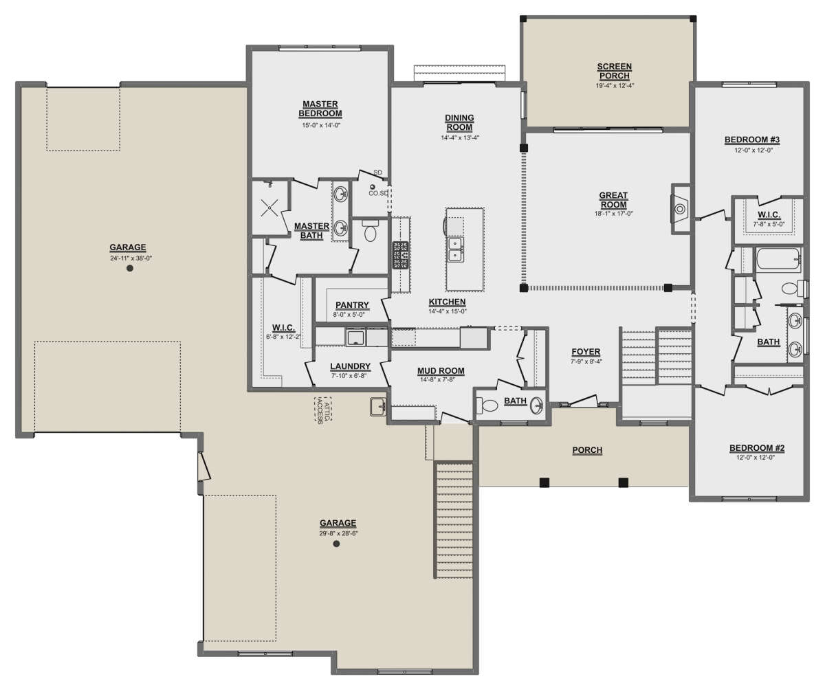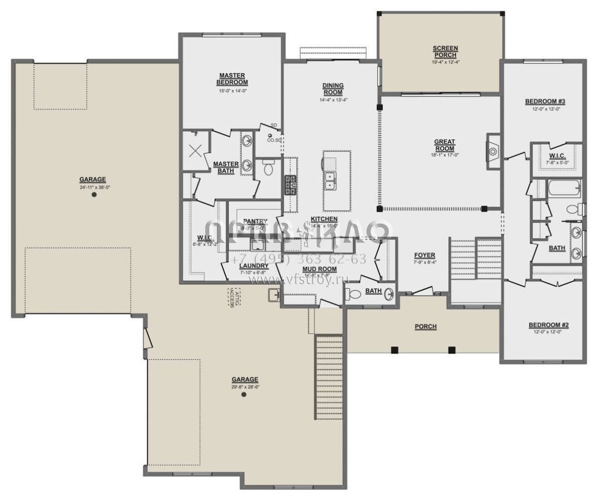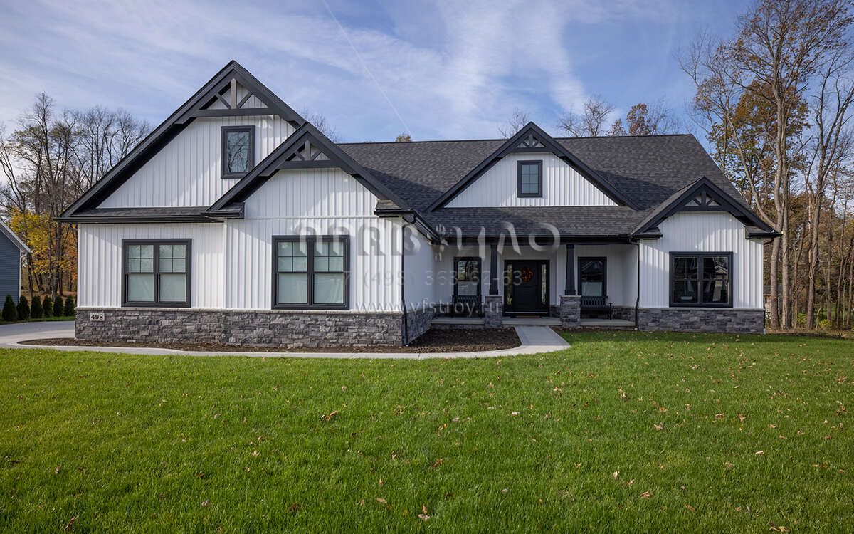Проект одноэтажного дома с гаражом на три и более машин в американском стиле S5-216 (1958-00001)