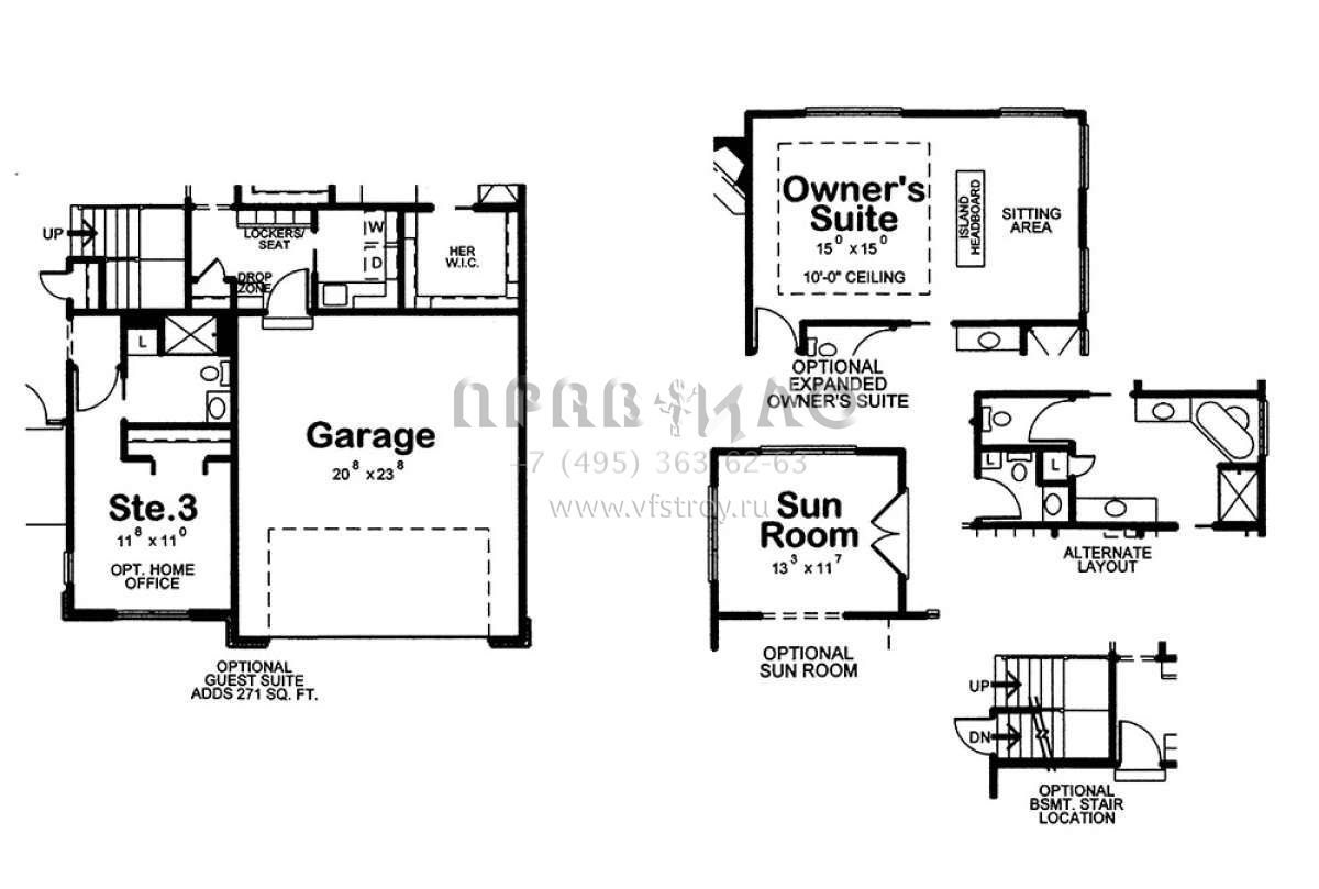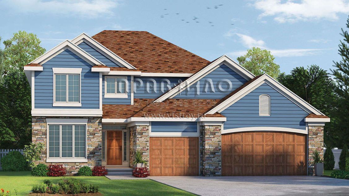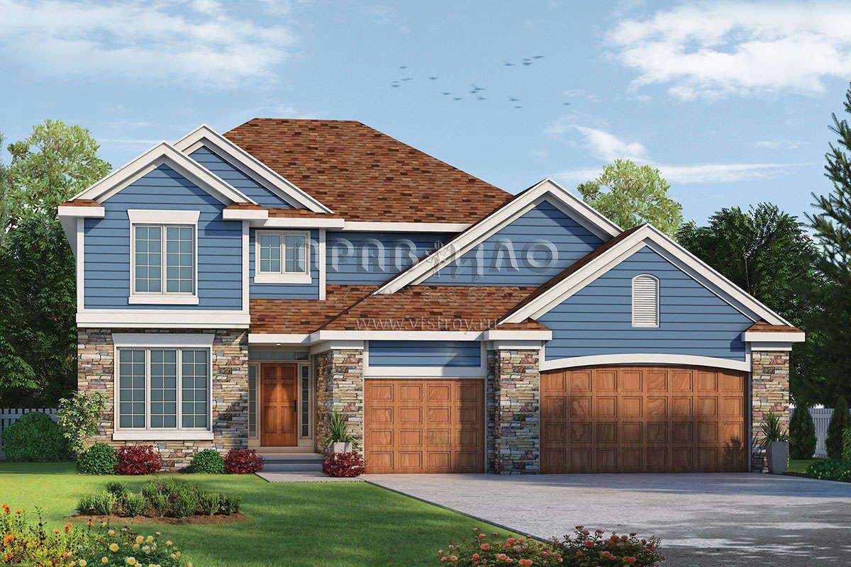 Проект двухэтажного дома с гаражом на три и более машин в стиле Ранчо S5-216 (402-01481)
