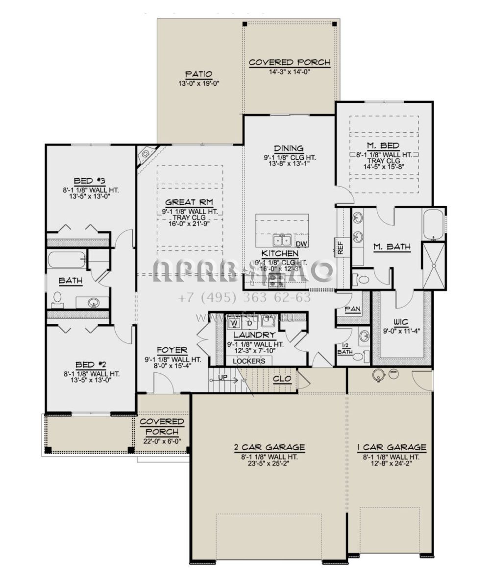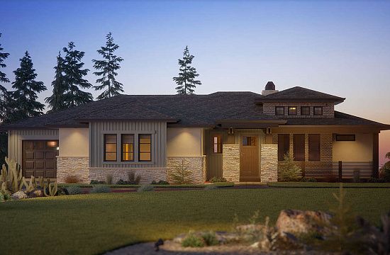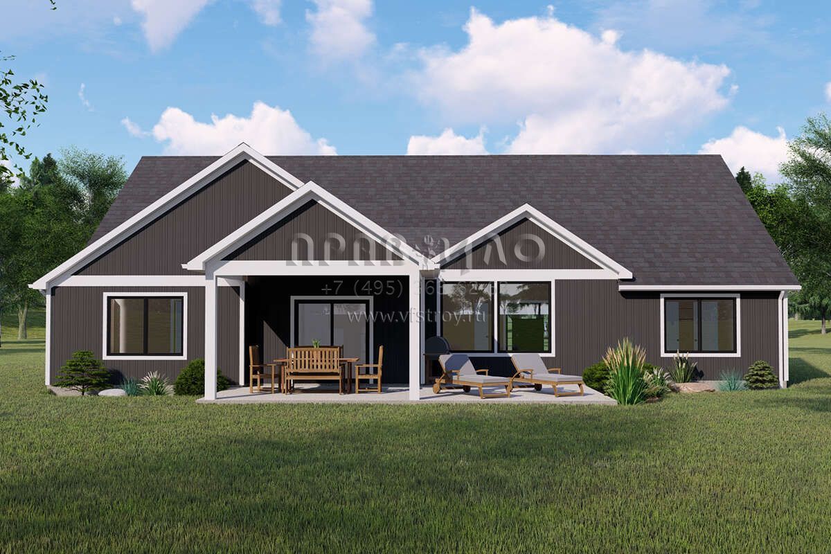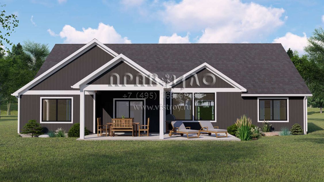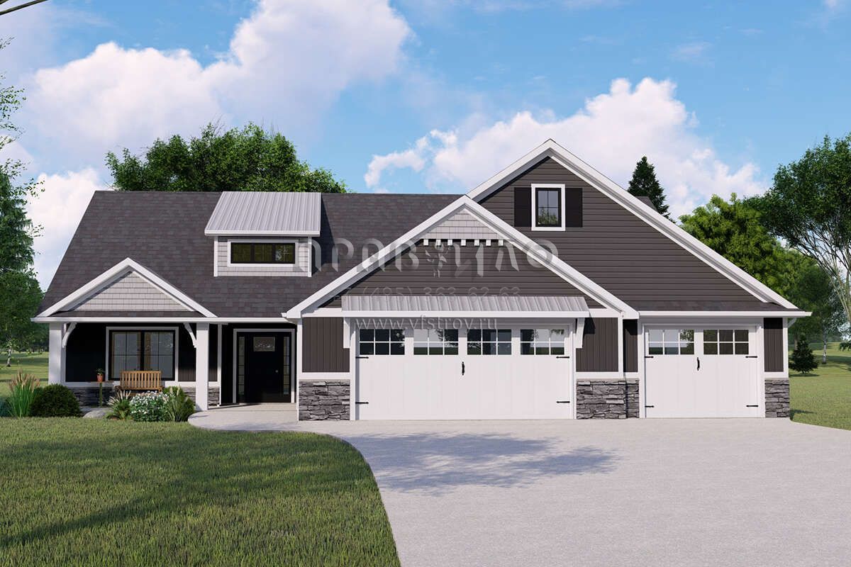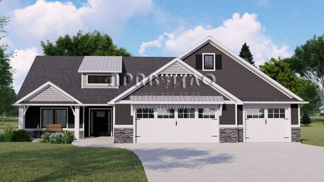 Проект одноэтажного дома с гаражом на три и более машин в американском стиле S5-216 (5032-00143)