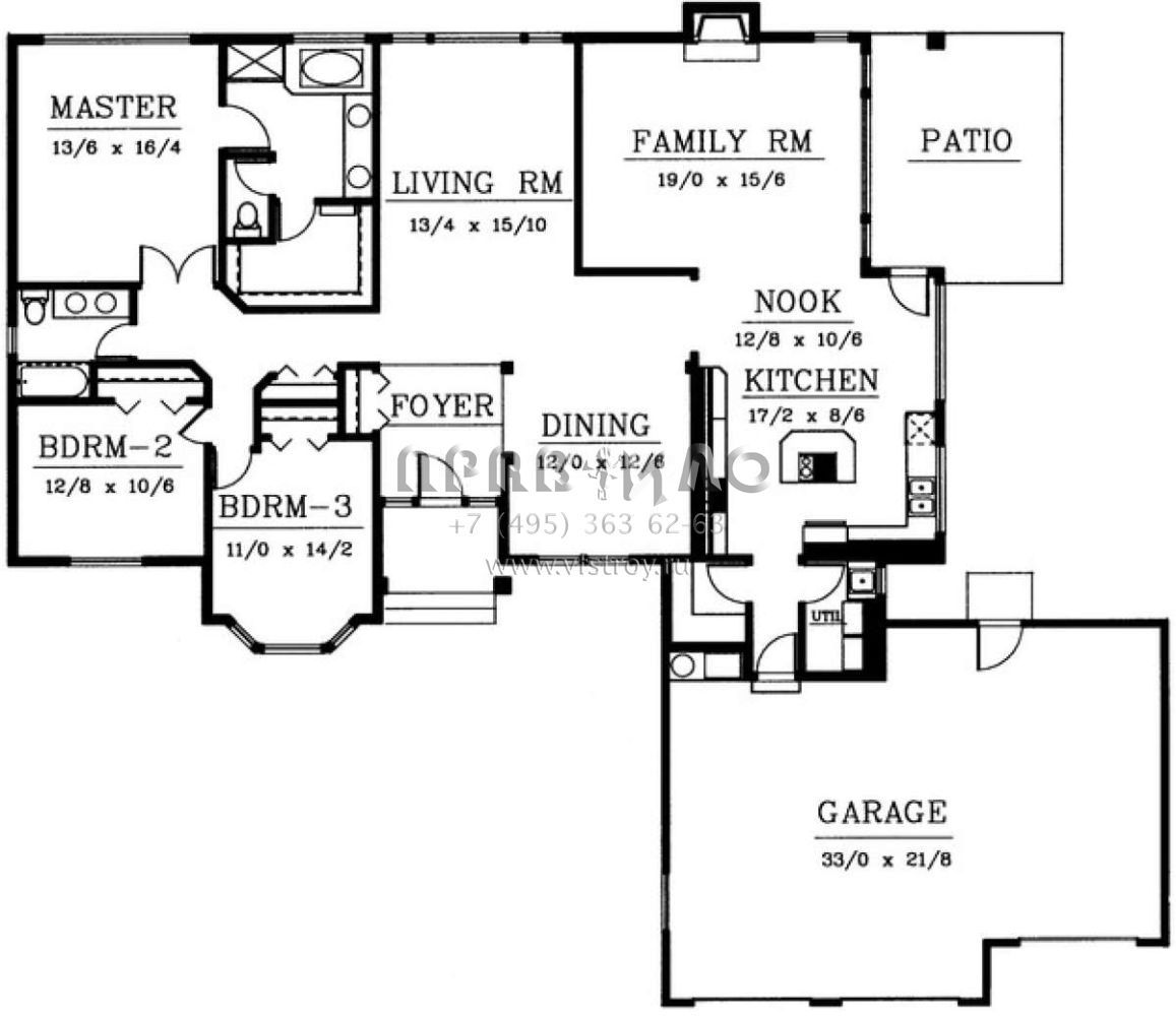 S5-216 (692-00074) Это иностранный проект, для которого требуется адаптация под нормы, действующие в Российской Федерации. Вы видите проект дома в стиле Ранчо. В этом доме сочетаются черты сельской постройки и аскетичность лофта. Внутри жильцы смогут проводить время с максимальным комфортом. Обратим внимание, что сейчас на планировках все размеры представлены в футах. Для перевода в метры вам необходимо значение в футах умножить на 0,3048.