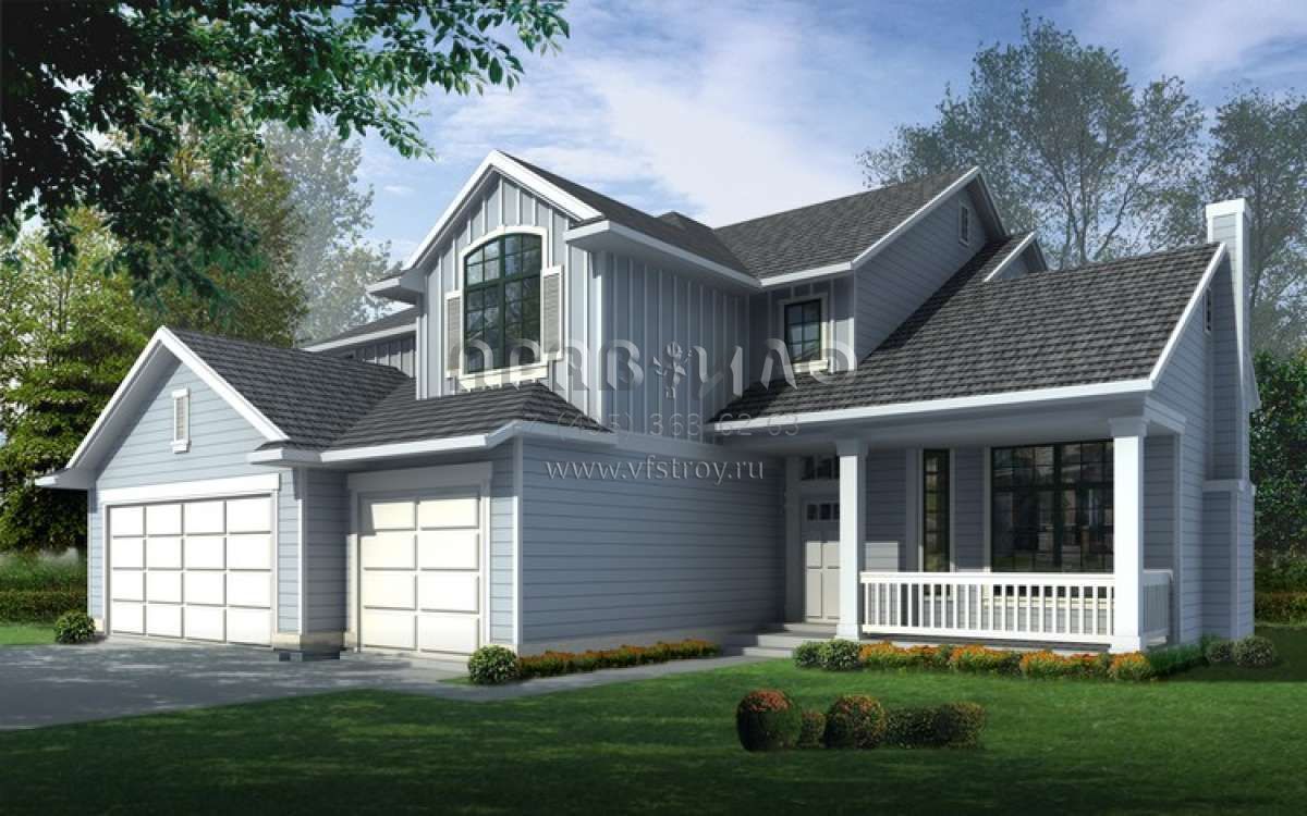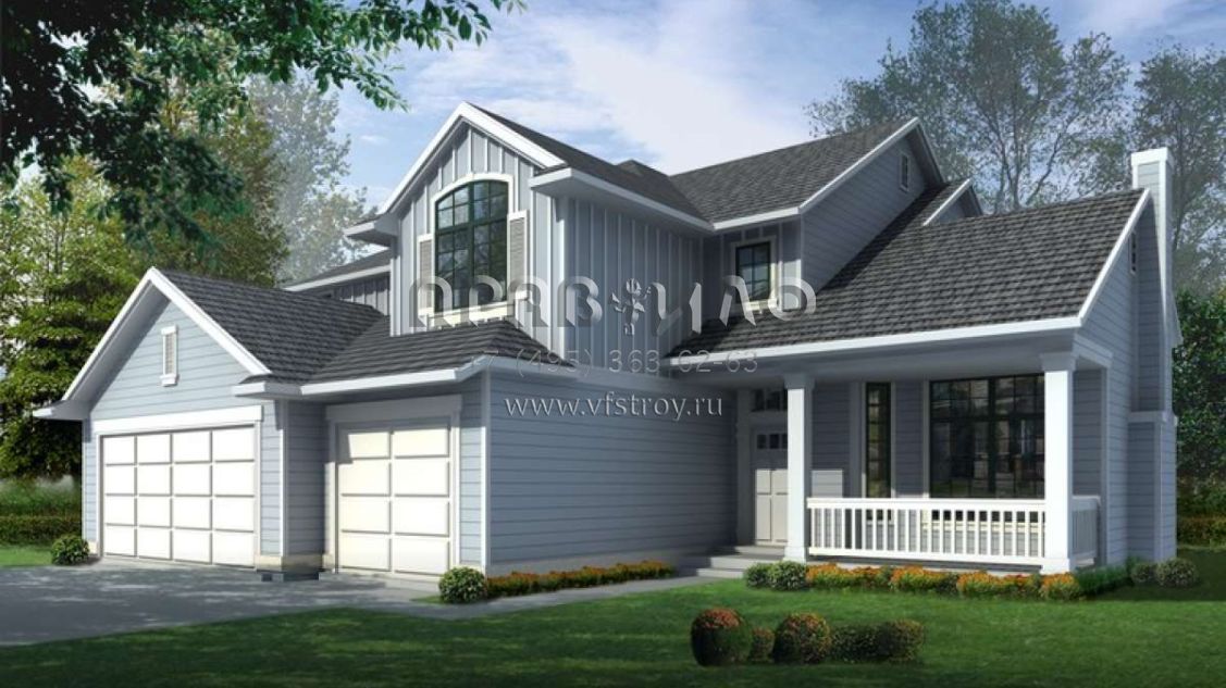 Проект двухэтажного дома с гаражом на три и более машин в стиле Ранчо S5-216 (692-00161)