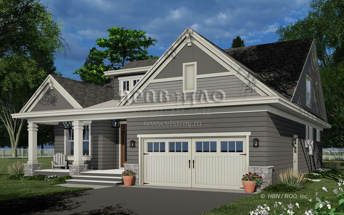Проект двухэтажного дома с гаражом на две машины в американском стиле S5-217 (098-00402)